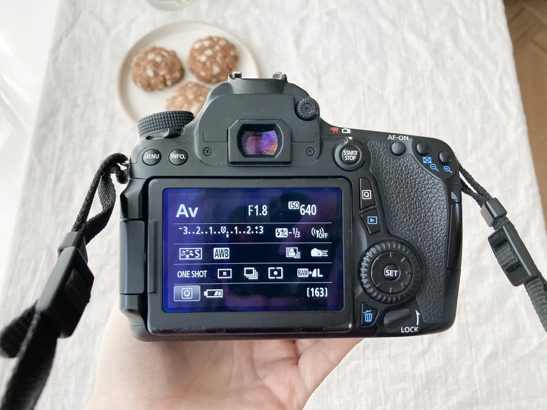 - Fotoaparát nastavte na režim AV (priorita clony) a foťte do RAW. Jestli chcete mít jako já zaostřené pouze sušenky a květiny rozmazané, nastavte clonové číslo F nanejvýš na hodnotu 3. Pokud chcete mít ostrou celou fotku, použijte vyšší clonové číslo (5 a výš).