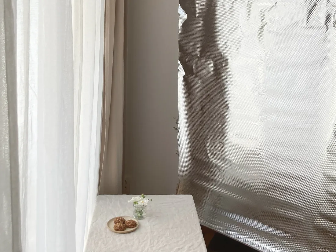 V létě je focení snadné, světlo je celý den. Ale co v zimě? Světla je o poznání méně a některé dny jako by bylo šero od rána do večera. V tom případě může pomoci bílá odrazná deska, jejíž odraz přidá světlo focenému objektu. V domácích podmínkách můžete použít velký bílý papír, bílé prostěradlo nebo jako já aluminiovou fólii. Není třeba hned investovat do profesionální odrazné desky (ani já ji nevlastním). Nastavíte odraznou plochu tak, aby její odraz dopadal na focenou scénu, čímž jí dodá potřebné světlo.