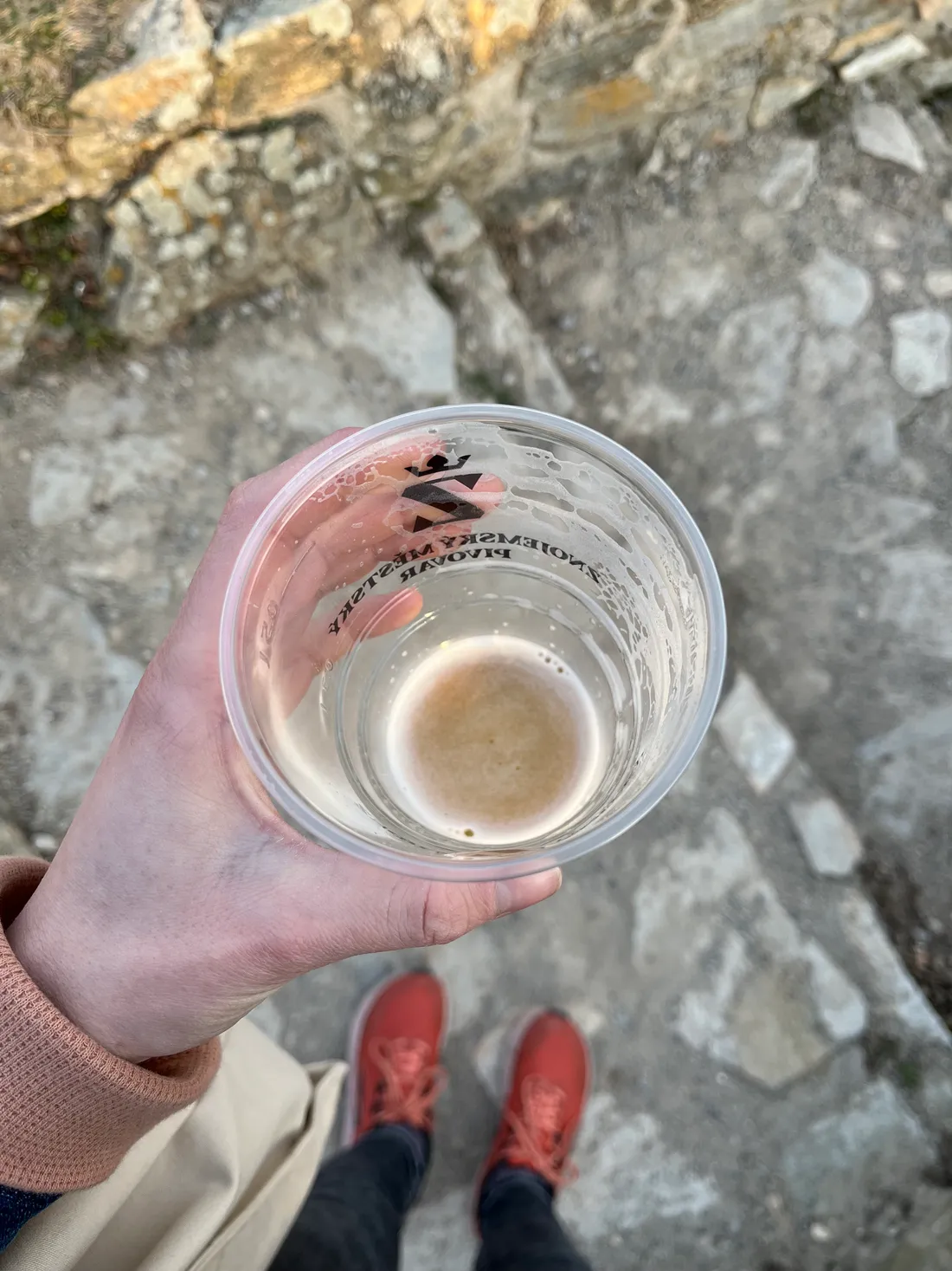 Cílem byla vyhlídka u znojemské rotundy, kde jsme si my dospělí dali první letošní pivo venku. Děti dostaly limonádu.