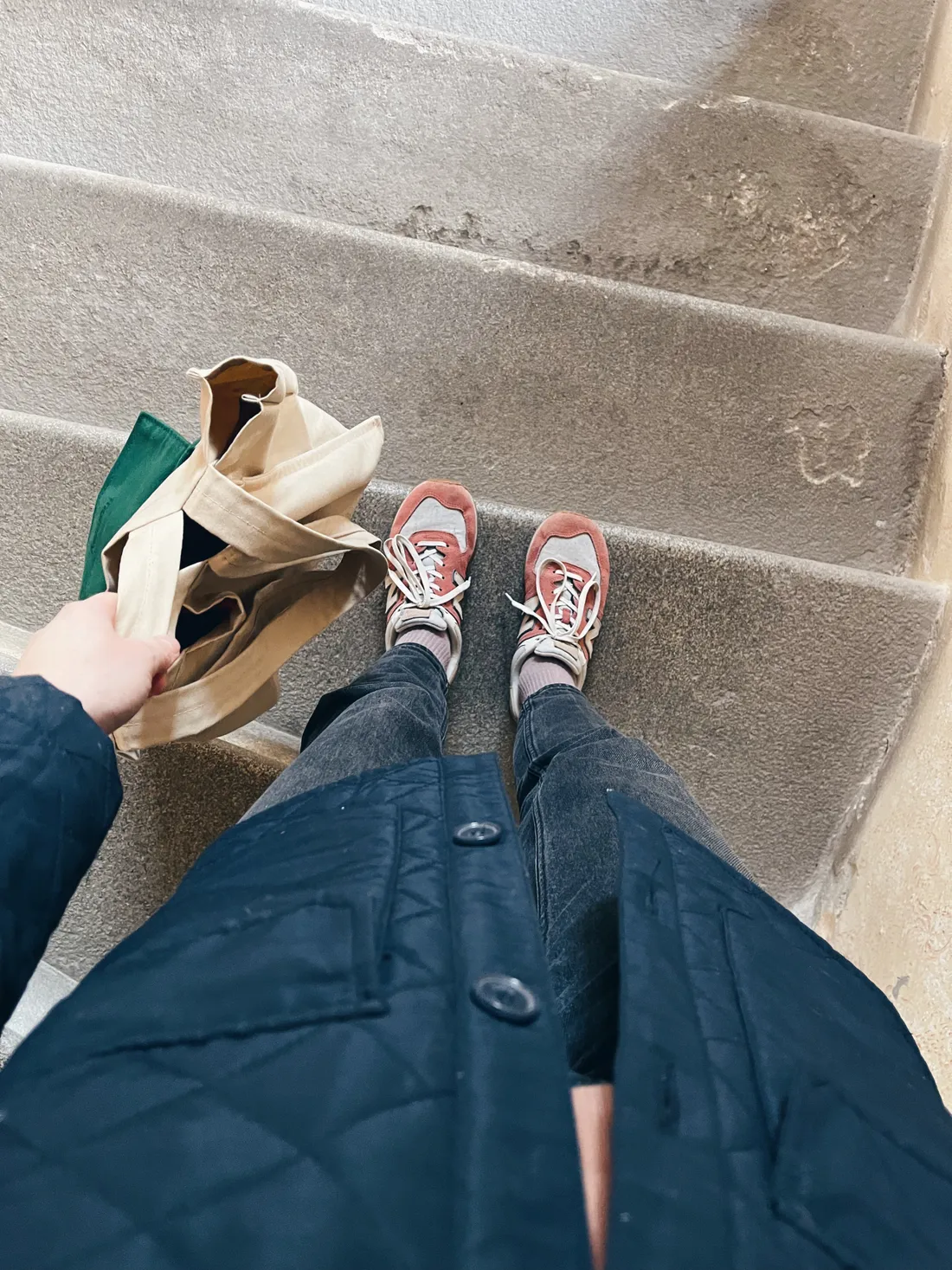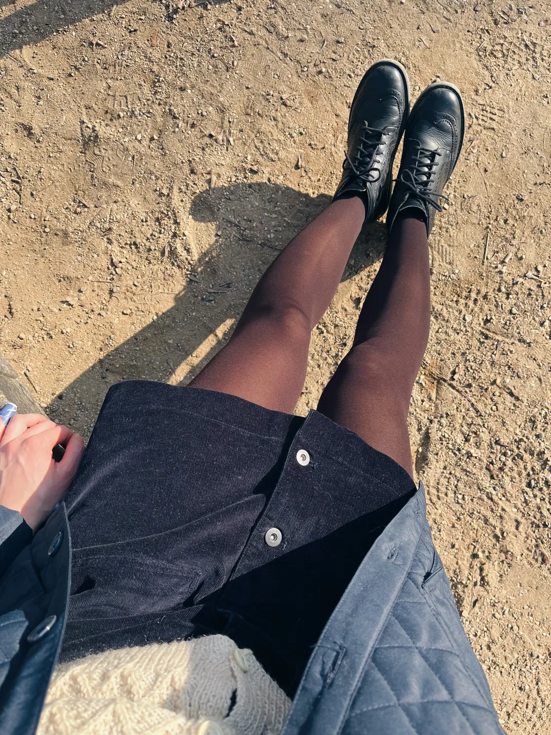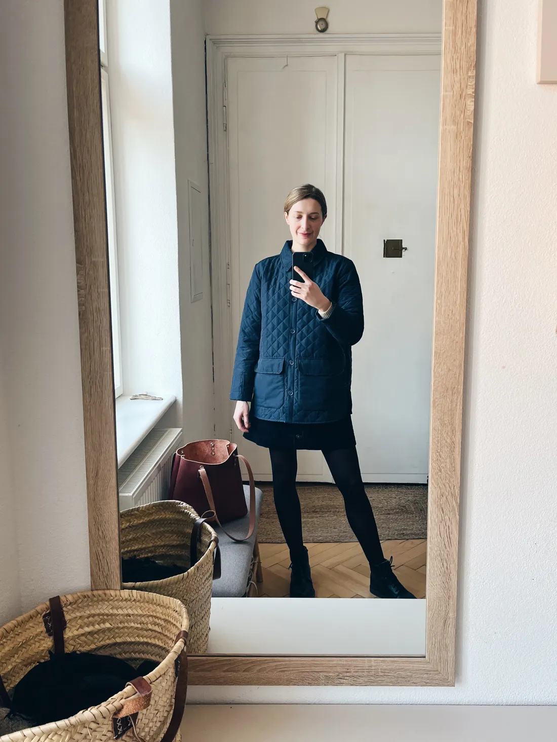 V neděli byl čas na sukni a prošívanou bundičku (úlovek z vinted). K tomu kožená kabelka, co jsem dostala k Vánocům.
