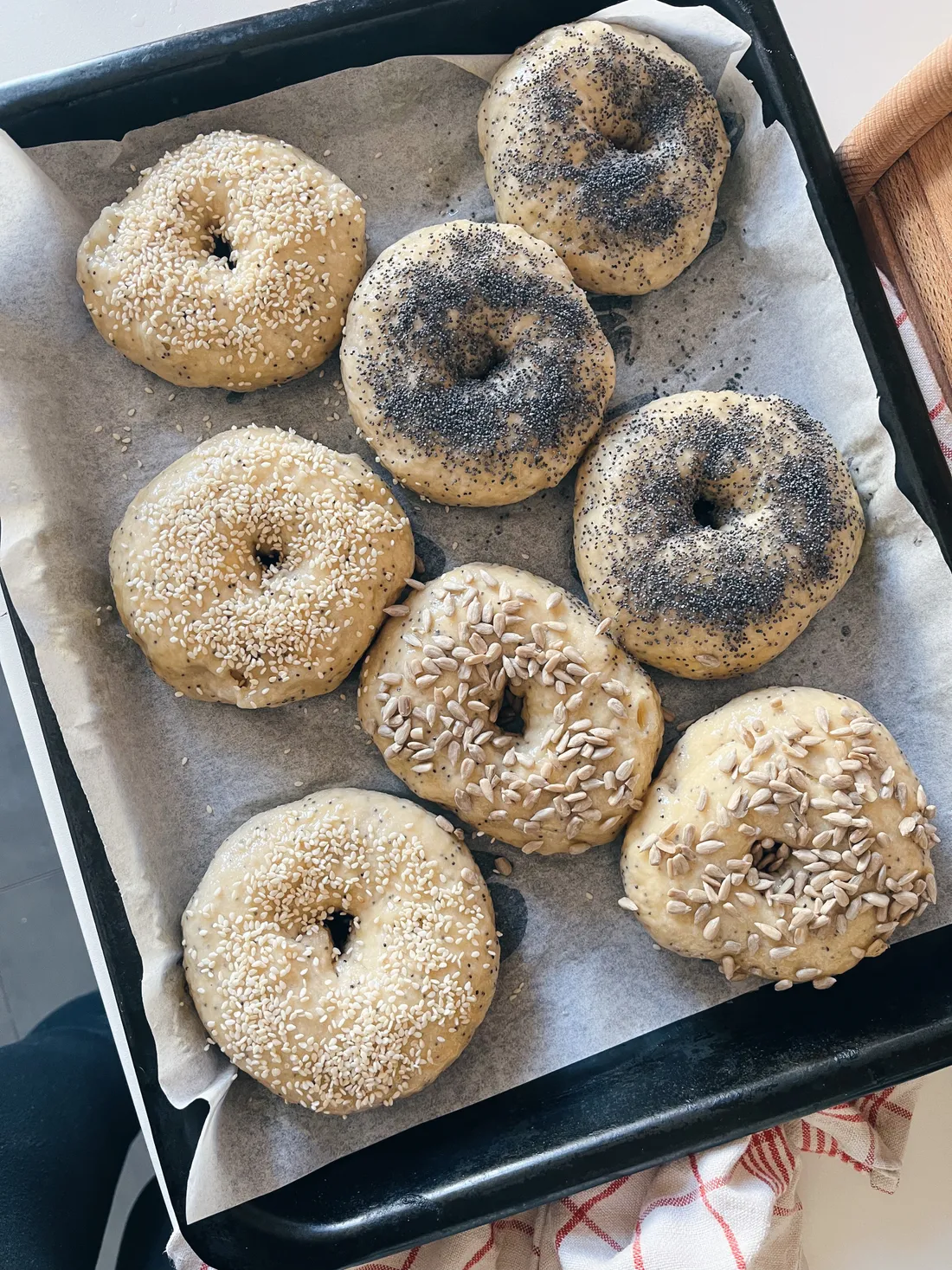 Ve čtvrtek jsem poprvé v životě pekla bagely. Vždycky jsem se jich trochu bála, jak se prvně musí vařit a pak ještě péct. Ale pak byly snazší, než jsem čekala.