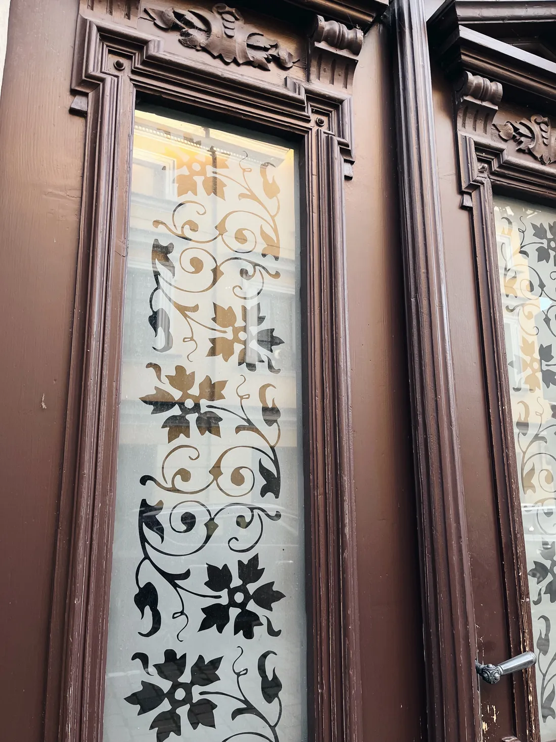 Skleněné vitráže s kytičkami.