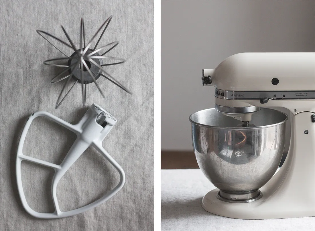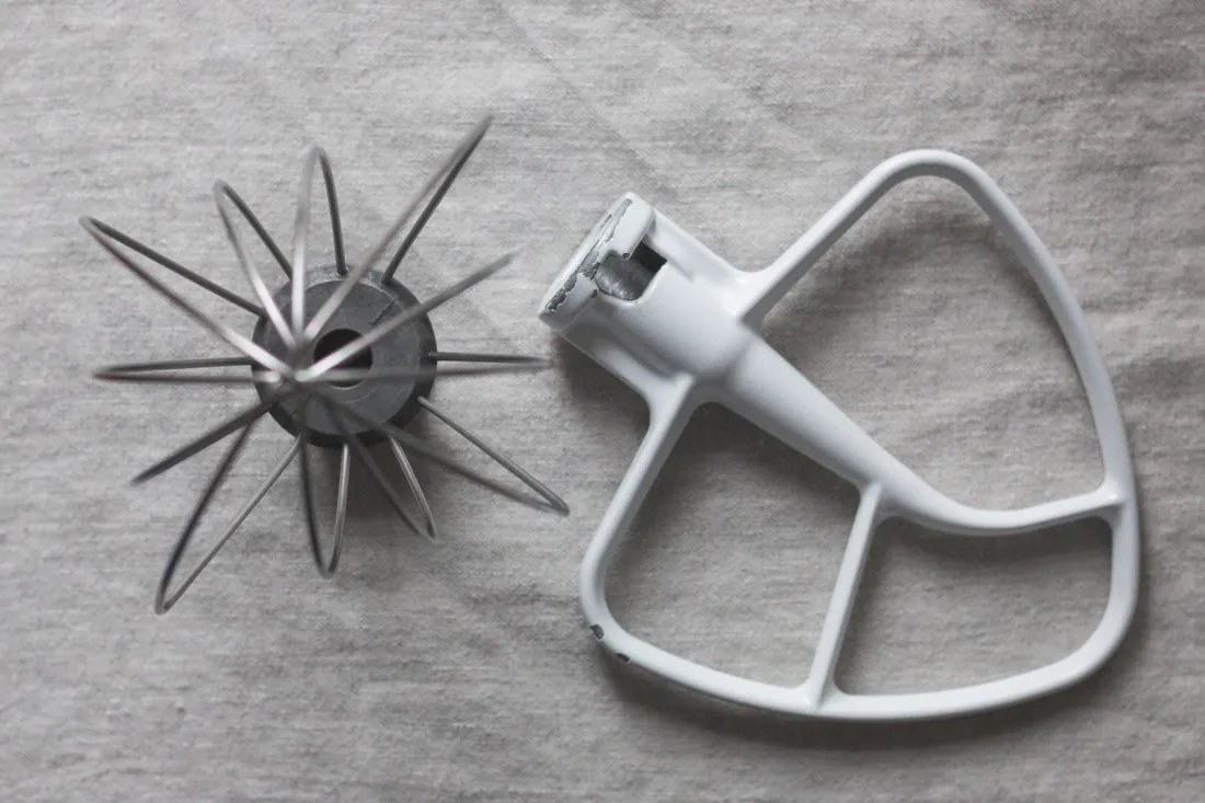 - Nyní můžete šlehací nástavec vyměnit za plochý nástavec na třená těsta, ale není to nutné.
