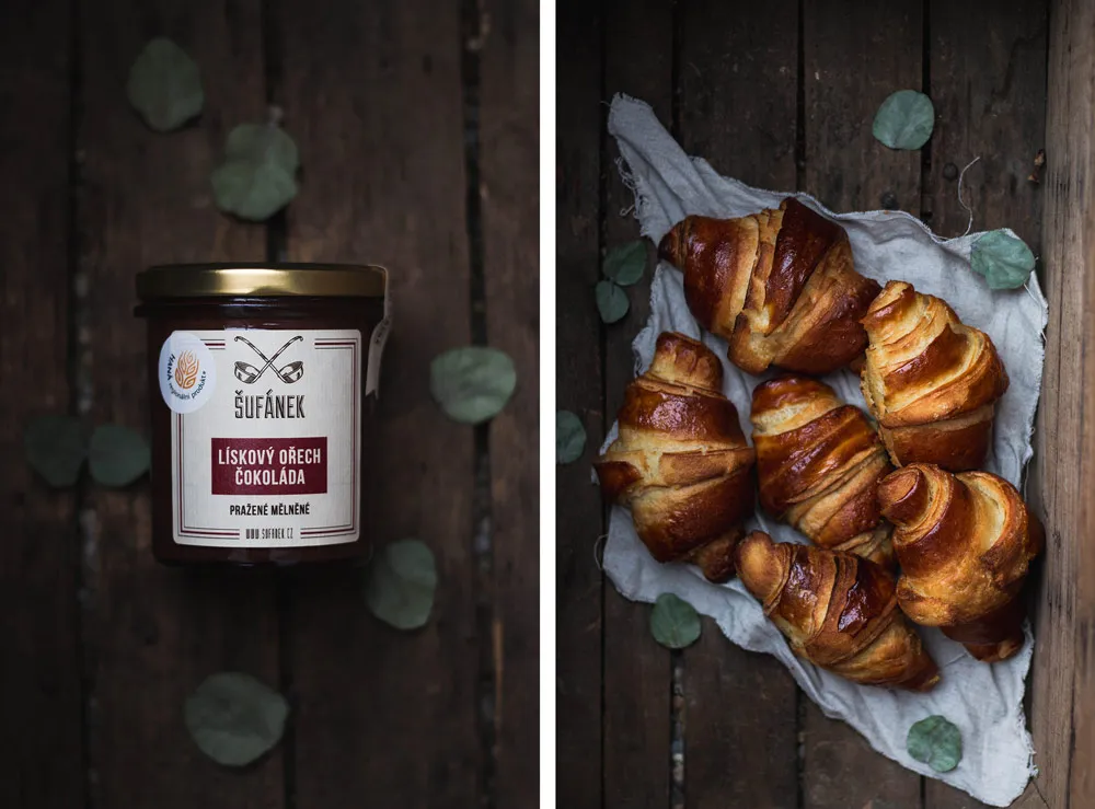 Croissanty s líškooříškovo-čokoládovým máslem