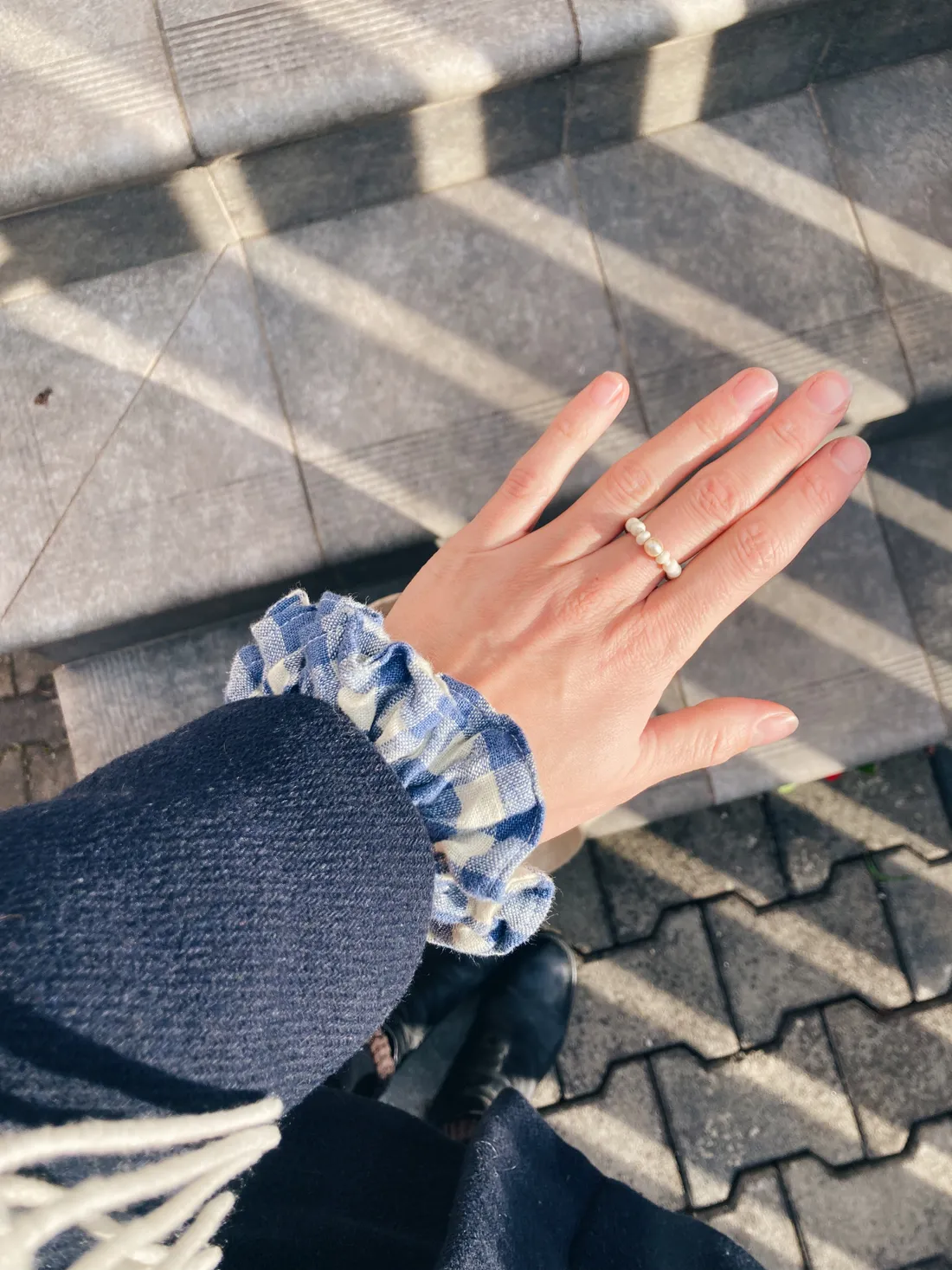 Neděle se zpočátku tvářila slunečně, ale nakonec byla spíš šedivá. Na ruce mám oblíbenou lněnou gumičku Joli Joli, která mi na jaře přišla jako dárek k šatům.