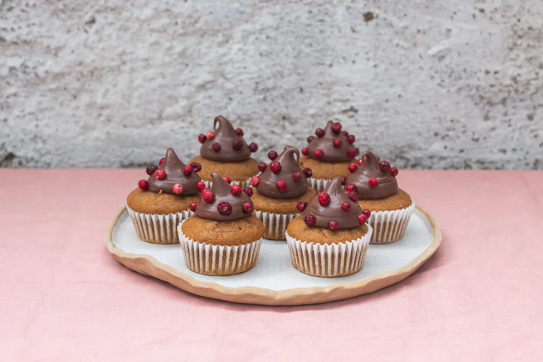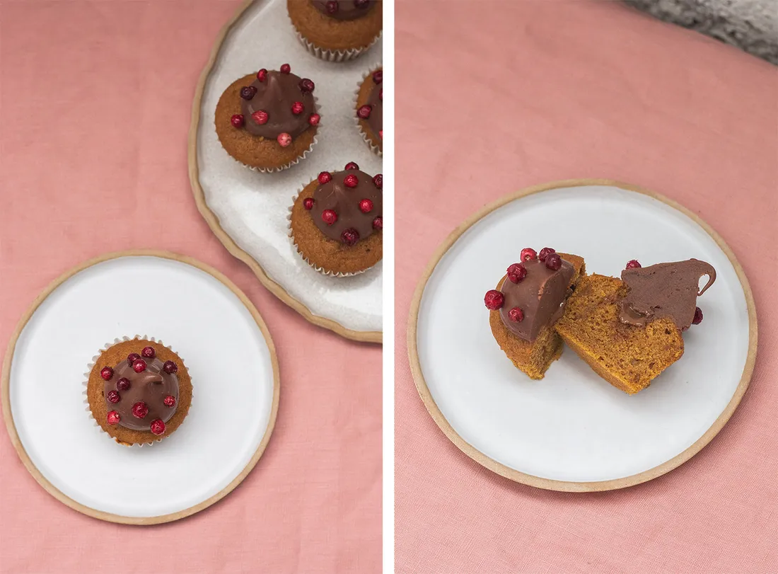 Dýňové cupcakes s čokoládovým krémem a lískooříškovým máslem