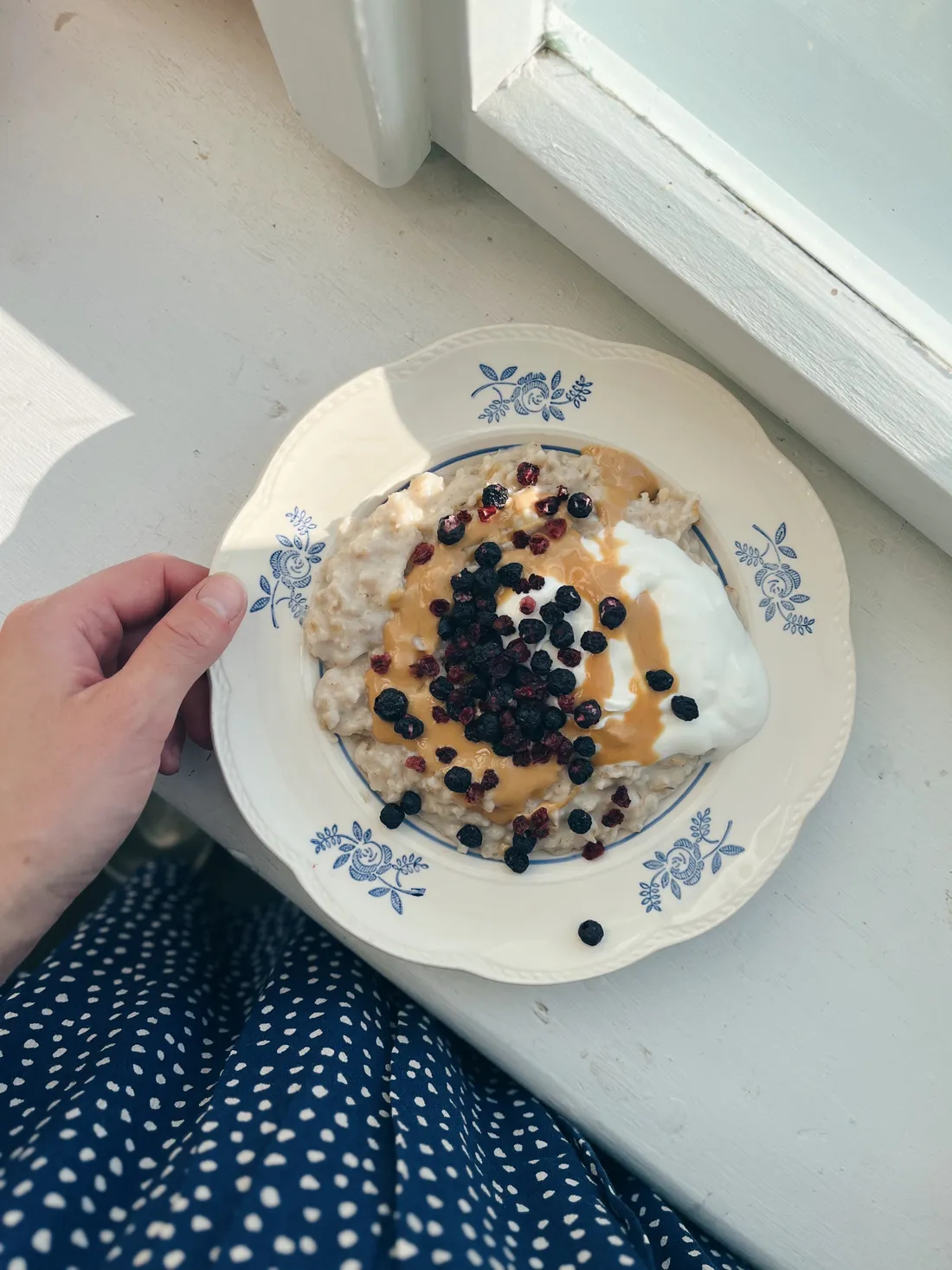 Minulé pondělí jsem začala ovesnou kaší. S arašídovým máslem, jogurtem a lyofilizovanými borůvkami.