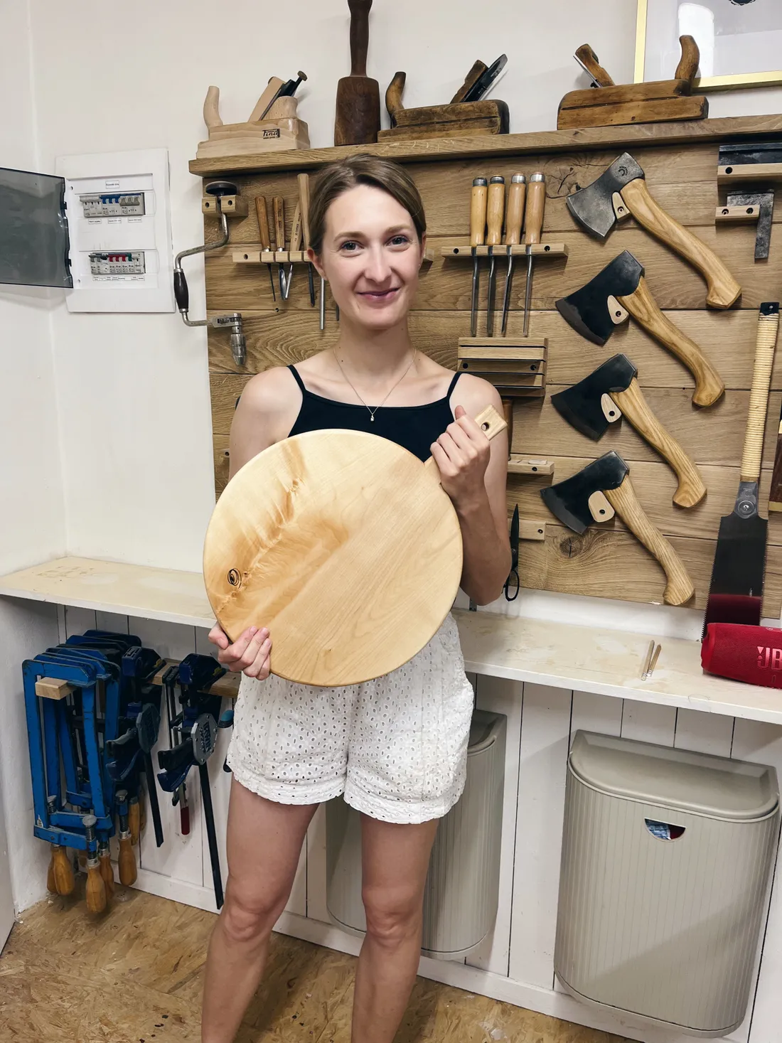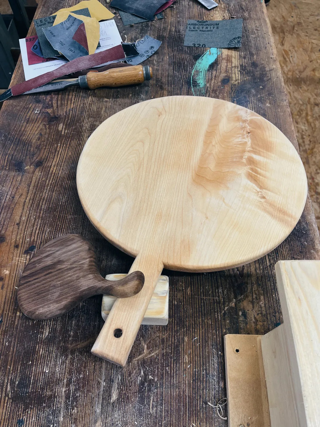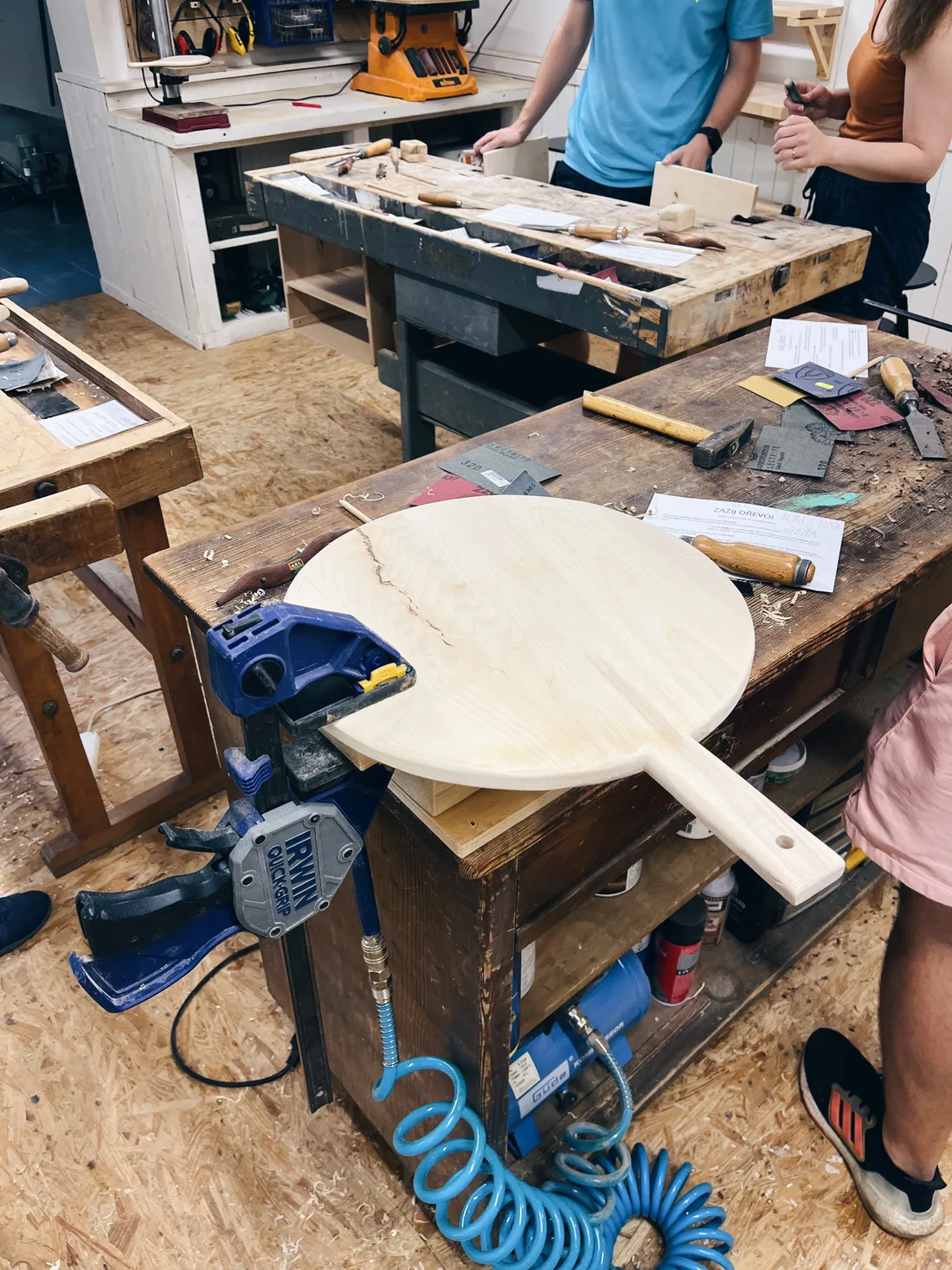 Během 4 hodin v jeho dílně jsme si prkénko ohoblovali, ošmirglovali, naolejovali a vypálili značku. Že tam bylo dobré kafe, to už je asi jen třešnička na dort.