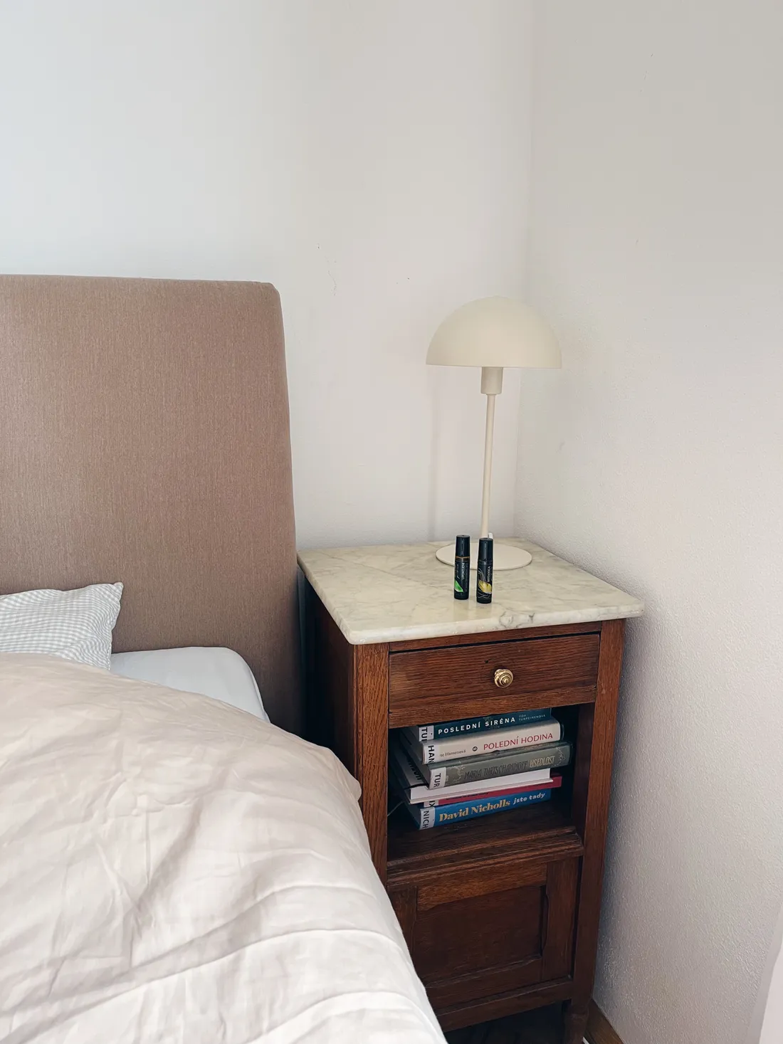 V pátek jsem pracovala na dalších ilustracích do knížky a průběžně jsem uklízela byl. Převlekla jsem postele, porovnala noční stolek (vidíte všechny ty knihy?) a oprášila lampičku.