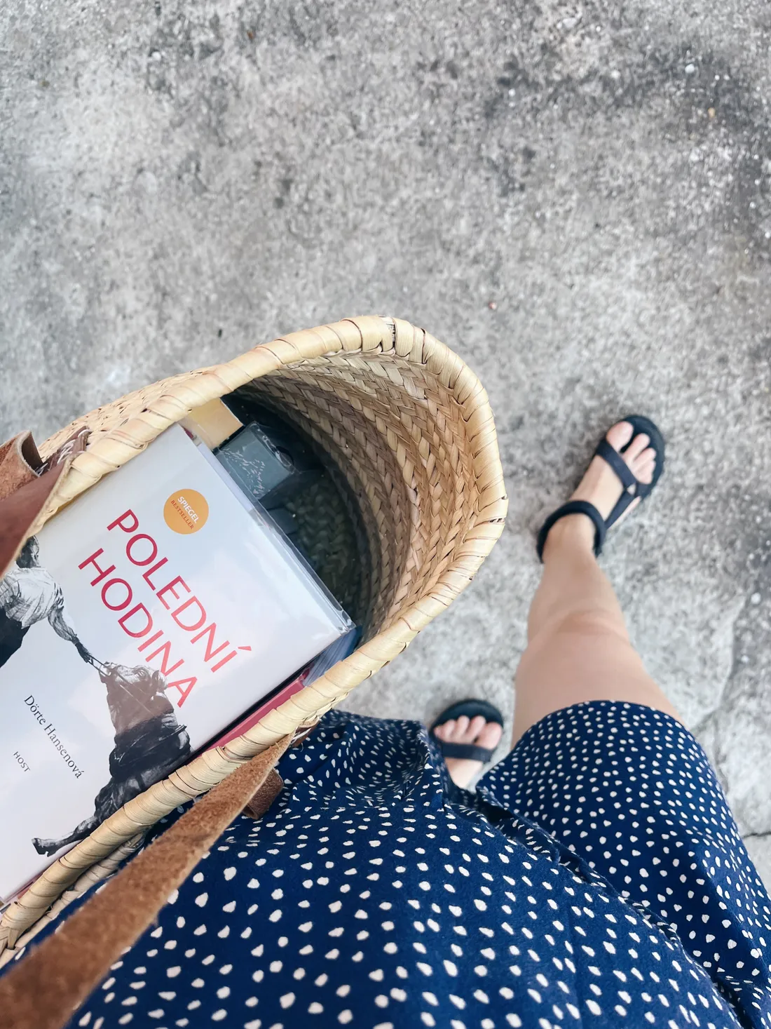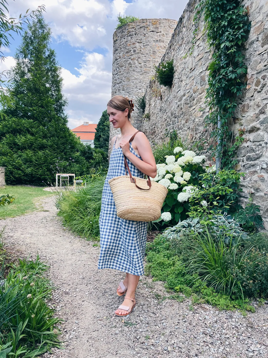 Vybrala jsem lněné kalhoty z NILA Store, vintage kabelku na pár nezbytností a balerínky, které nosím v jednom kuse, jsou to tyhle. Původně jsem se na podobné semišové baleríny dívala u Cayumas, ale měla jsem obavu, abych strefila správnou velikost, navíc když by ke mně šly ze zahraničí. Nakonec jsem koupila tyhle obyčejné a udržitelné balerínky počkají na jinou sezonu.