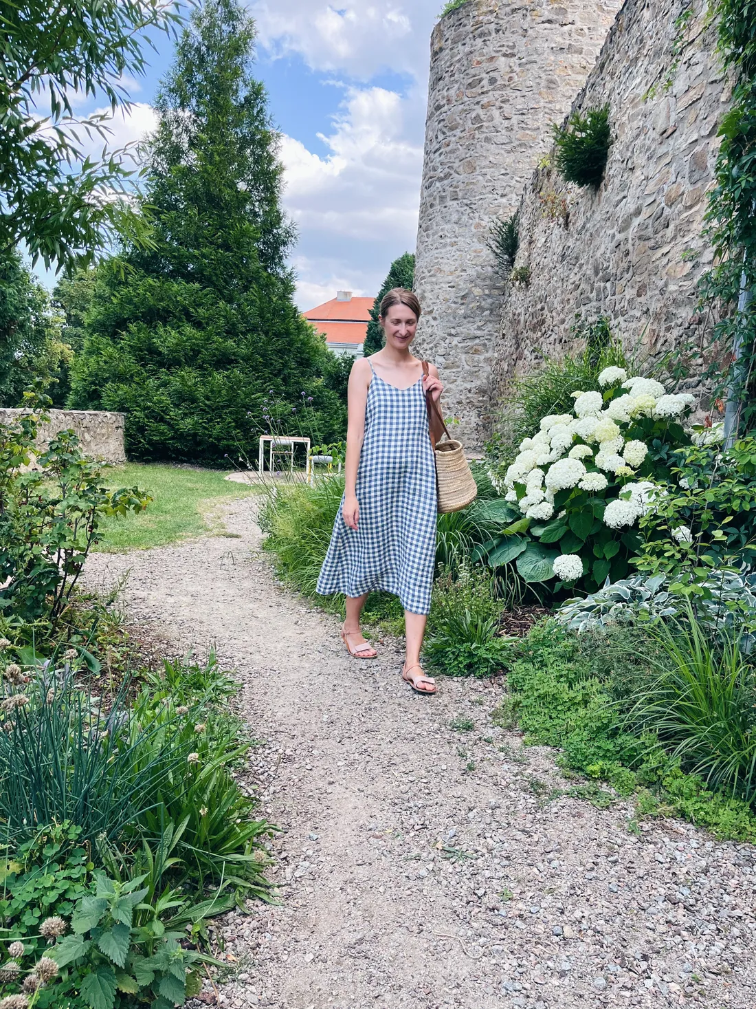 Odpoledne jsme s dětmi šli do kavárny Půl na půl ochutnat jejich vanilkovou zmrzlinu. Vybrala jsem si na sebe lněné šaty Joli Joli, košík a sandálky. Zase mě fotil syn a zase udělal asi 50 fotek :)