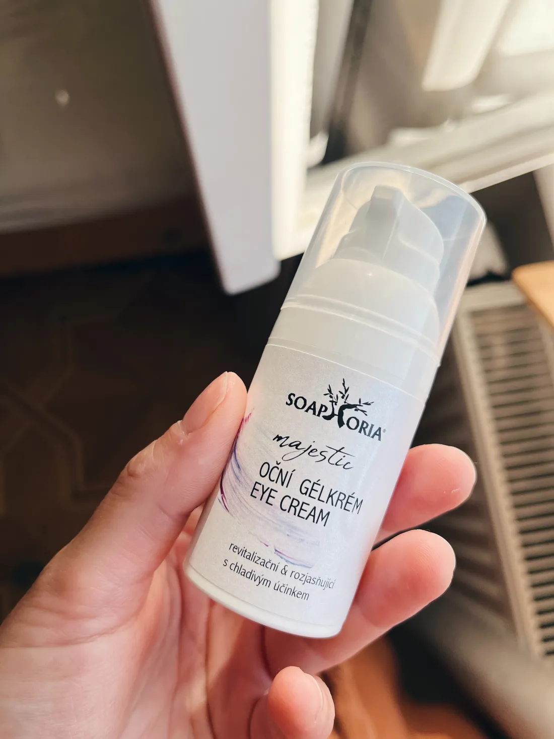 V balíčku ze Sopaphorie byl oční gel krém, takový lehoučký gel, který si každé ráno namažu na kruhy pod očima, někdy se budím pěkně opuchlá. Gel mám v lednici, aby byl pořádně studený a osvěžující.