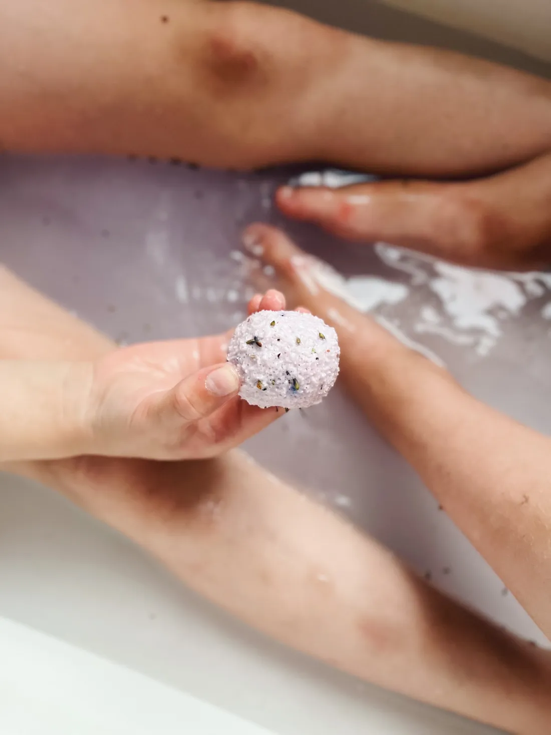 Protože mělo pršet až do večera, naložily se děti do vany společně s levandulovou koupelovou bombou. Ve vodě začala šumět a rozpouštět se a celou koupelnu provoněla intenzivní levandulovou vůní. Pro někoho, kdo je citlivý na výrazné vůně, by mohla být až moc silná.