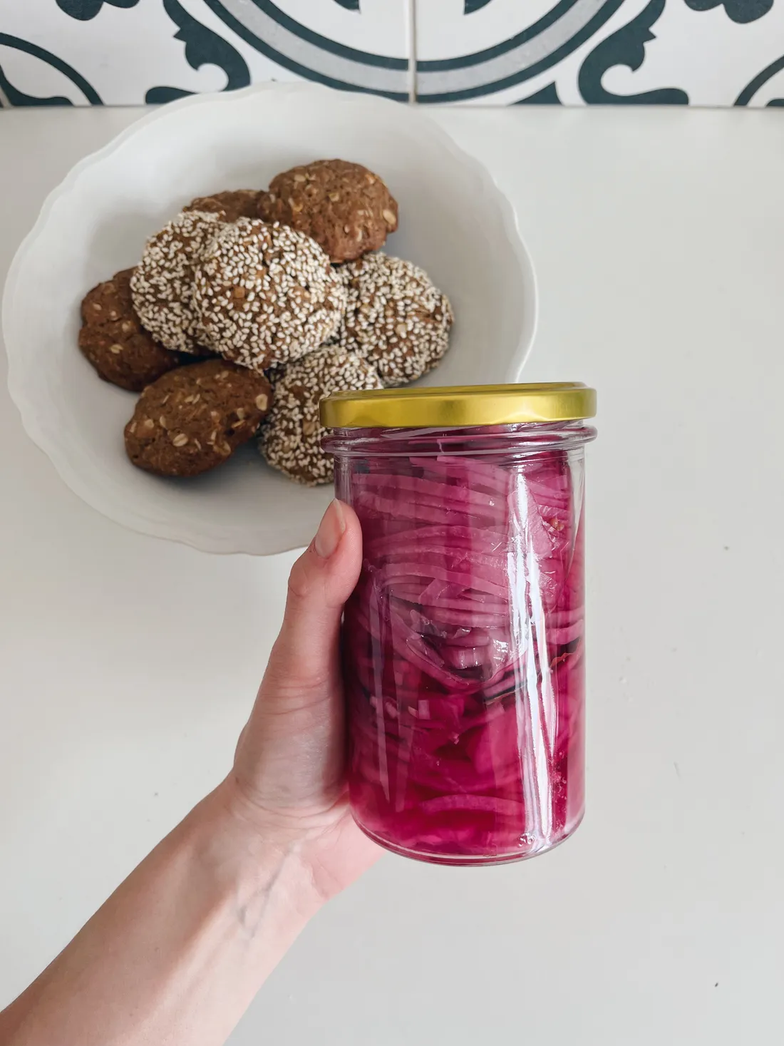 Ve čtvrtek jsem točila reel s receptem na rychlé ovesné sušenky a další reel s jarními modely z mého šatníku. Naložená cibule se přes noc odležela v pokojové teplotě a získala takhle hezkou barvu. A šup s ní do lednice.