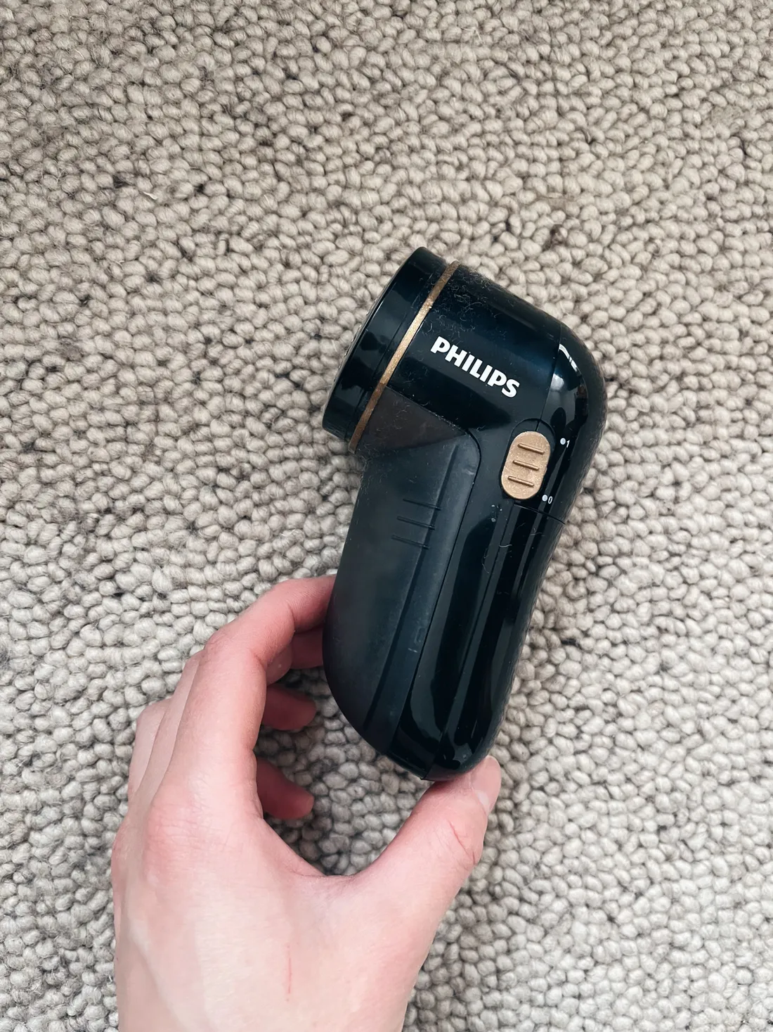 Zatímco muž vzal děti ven, já jsem se pustila do odžmolkování části koberce. Tady je před...
