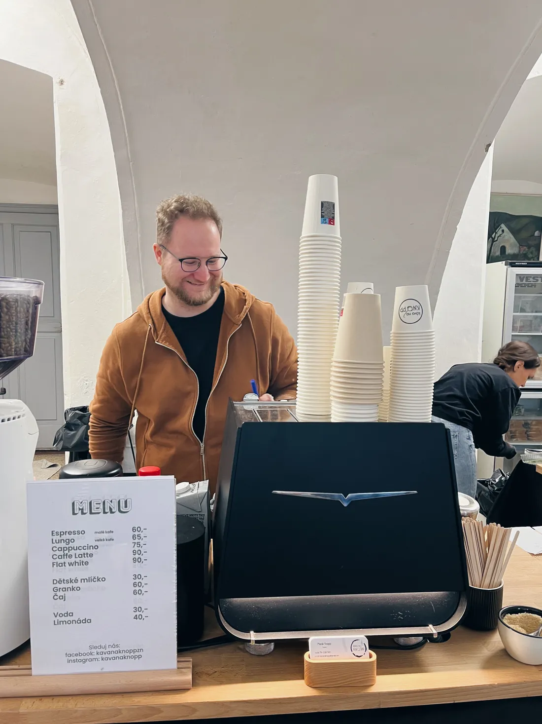 Naštěstí jsme tu potkali dobré kafe z kavárny Na Knopp.