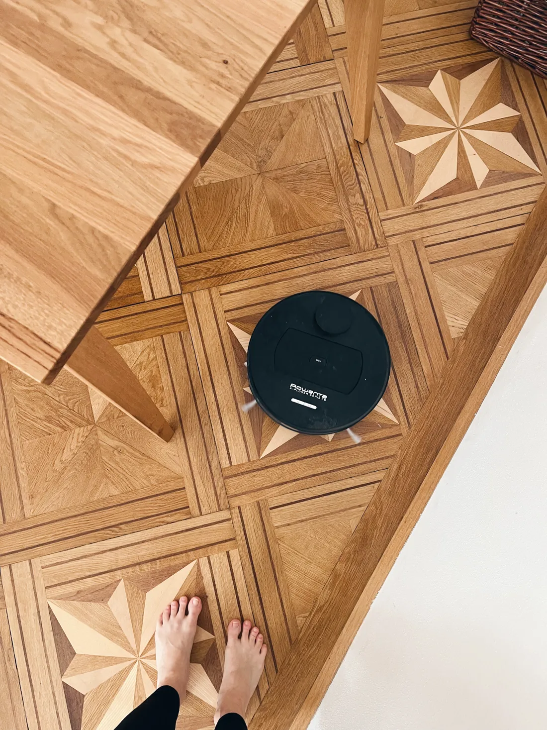 Taky jsem pustila vysavač, ať máme čisté podlahy. I když je doma rozházených sebevíc hraček a dětských knížek, čistě vysátá podlaha bez drobečků mi přináší mi jakýsi vnitřní klid.