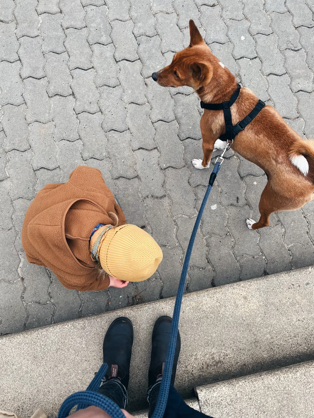 Odpoledne jsem děti vystřídala, vzala jsem ven dcerku a Čotyho. Dceřina ladící barva oblečků není náhodná, celou dobu si hrála na Čotyho.