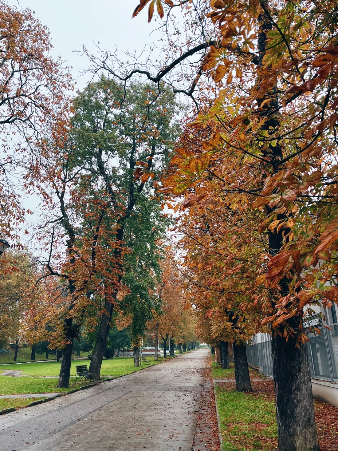Cesta podzimním parkem. Podle fotky to tak nevypadá, ale bylo šedo, mrholilo, nic příjemného.