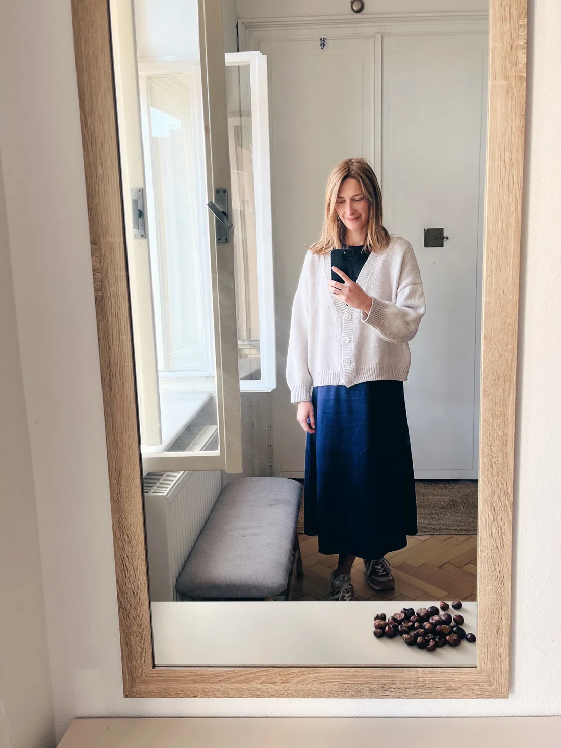 V pondělí ráno bylo krásně, i když po ránu už pěkně lezavo. Vzala jsem si pohodlnou sukýnku z NILY a hřejivý merino kardigan Merilen.