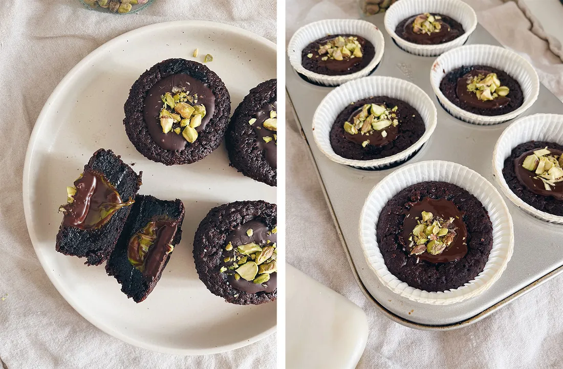 Kladdkaka muffiny bez lepku s pistáciovým máslem