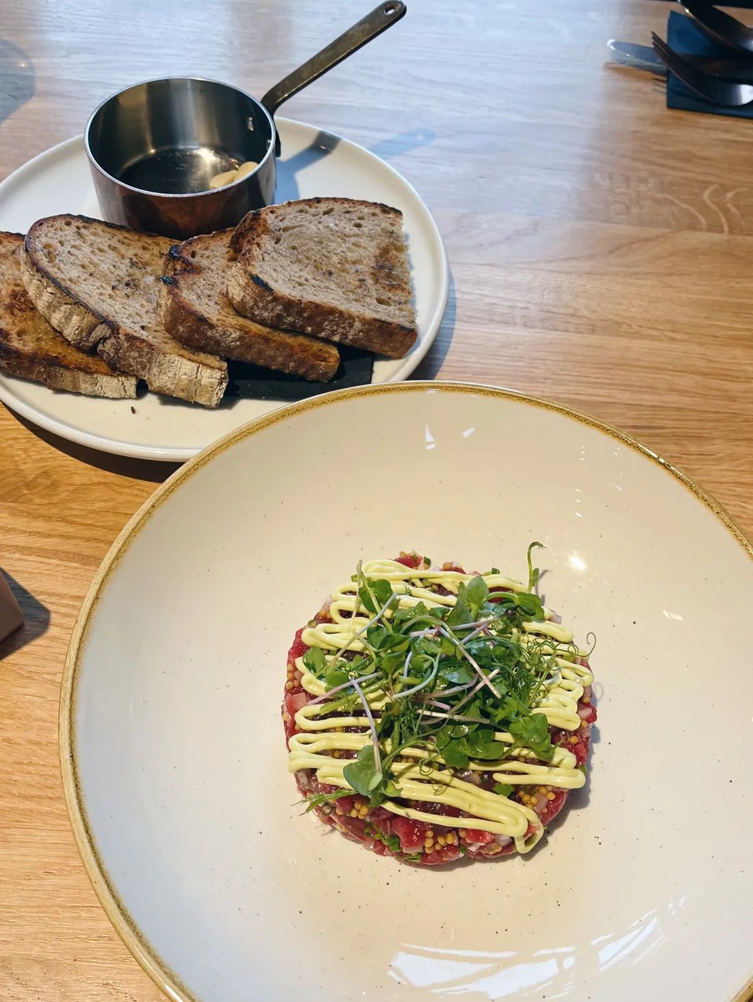 Vytáhli jsme i mužovu sestru, která tu bydlí. Jako předkrm jsme si dali skvělý tatarák a následoval langoš a moc dobré pivo.