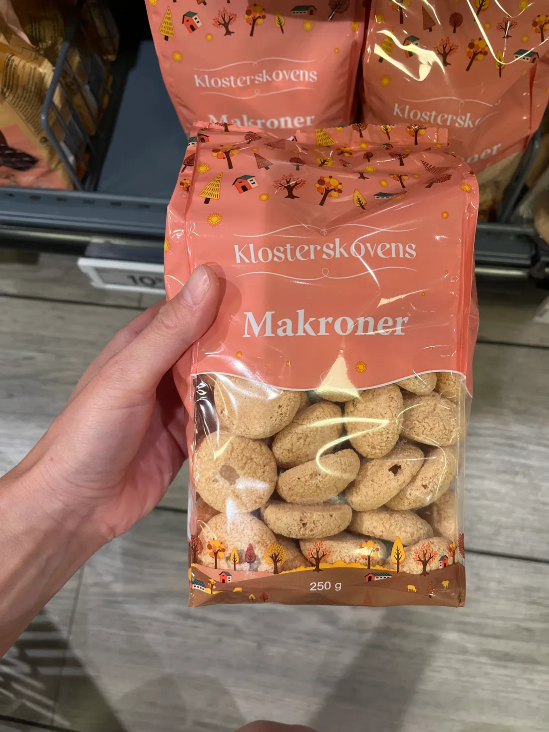 V rámci objevování dánské kultury jsem zašla do potravin. Tohle jsou dánské makronky, recept najdete v mojí kuchařce, ale tady jsou k dostání už hotové.