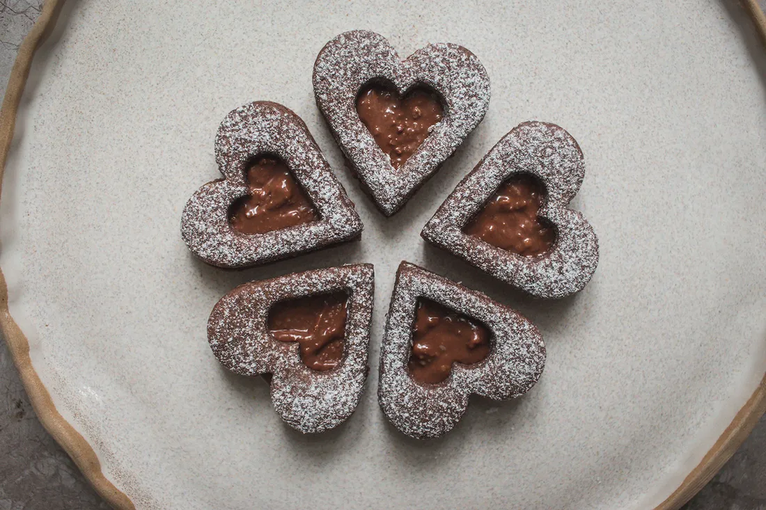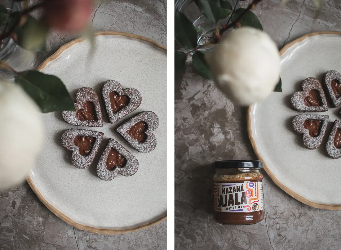 Myslím, že mám nové oblíbené cukroví. Křehké kakaové linecké slepené Mazanou Ajalou (lískooříškovo–čokoládovým máslem). Není moc sladké, což mi neskutečně chutná, a jen se rozplývá na jazyku. Je to variace na vámi oblíbené linecké ze špaldové mouky, jen jsem do těsta přidala kakao.