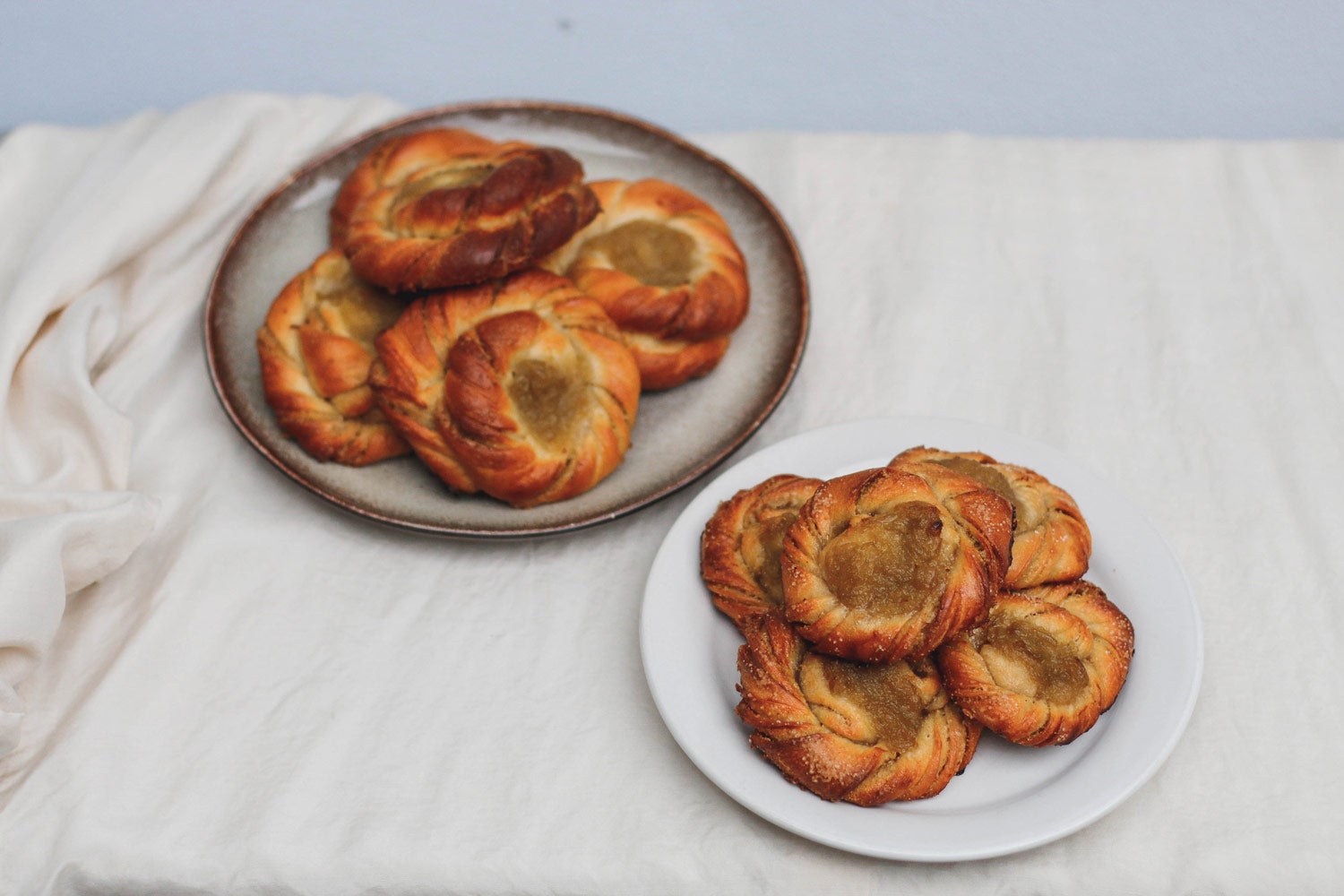 Chci přijít na kloub sladkému pečení z kvasu. Pečení z kvasnic zvládám levou zadní, ale kvásek je pro mě stále vyšší dívčí (někdy bojuju i s chlebem). Načetla jsem spoustu receptů a rad, jak se z kvásku sladce peče, vyhradila si na své pokusy skoro celý den a pustila jsem se do toho.