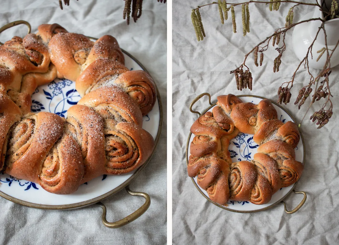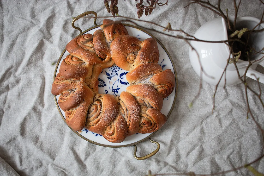 Mám pro vás recept na švédský kynutý věnec s voňavou kardamomovou náplní - ve švédštině vetekrans med kardemumma. Má křupavou vnější vrstvu a pod ní je neskutečně nadýchané a vláčné těsto plněné aromatickým čerstvým kardamomem. Až ho budete jíst, nejlepší je loupat ho po jednotlivých vrstvičkách a zapíjet ho černou kávou, přesně jako Švédi.