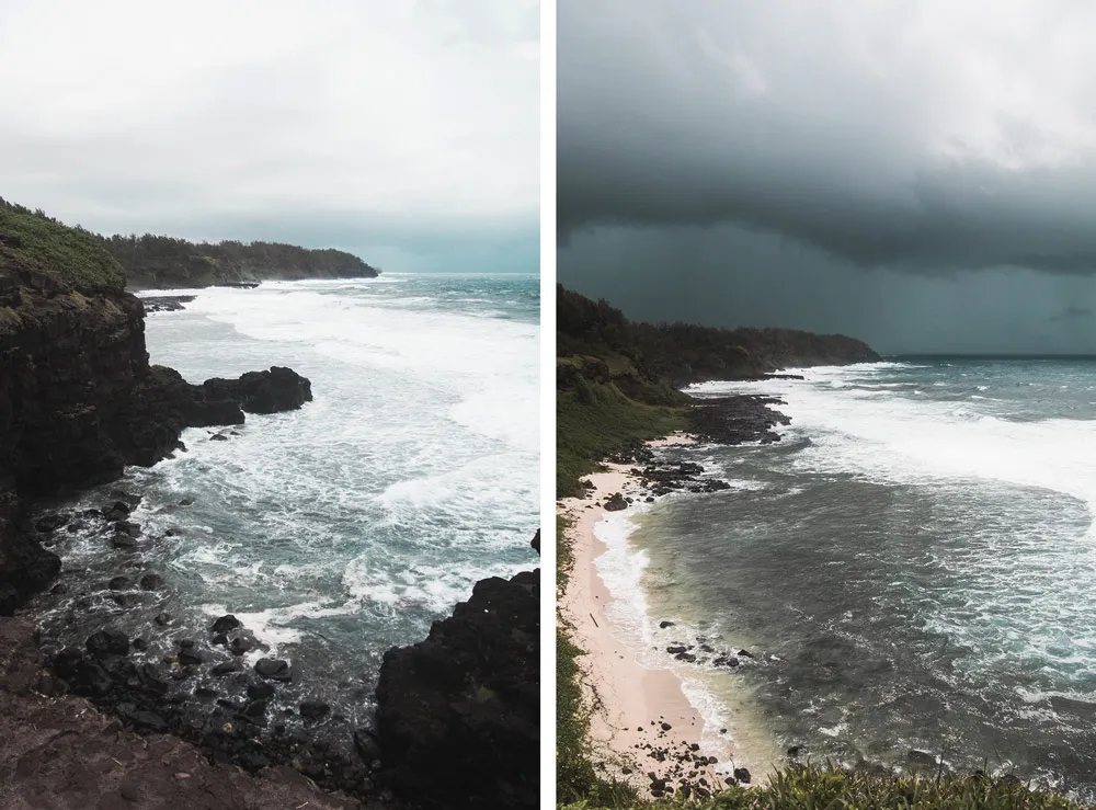 Jeden den jsme jeli k útesům Gris-Gris na jihu a pro mě to bylo nejkrásnější místo celého ostrova. Několikametrové vlny se rozrážely o černé skalnaté pobřeží, fučelo, že nás to div neodválo a hnal se a nás přívalový déšť. Vítr a voda v plné polní.