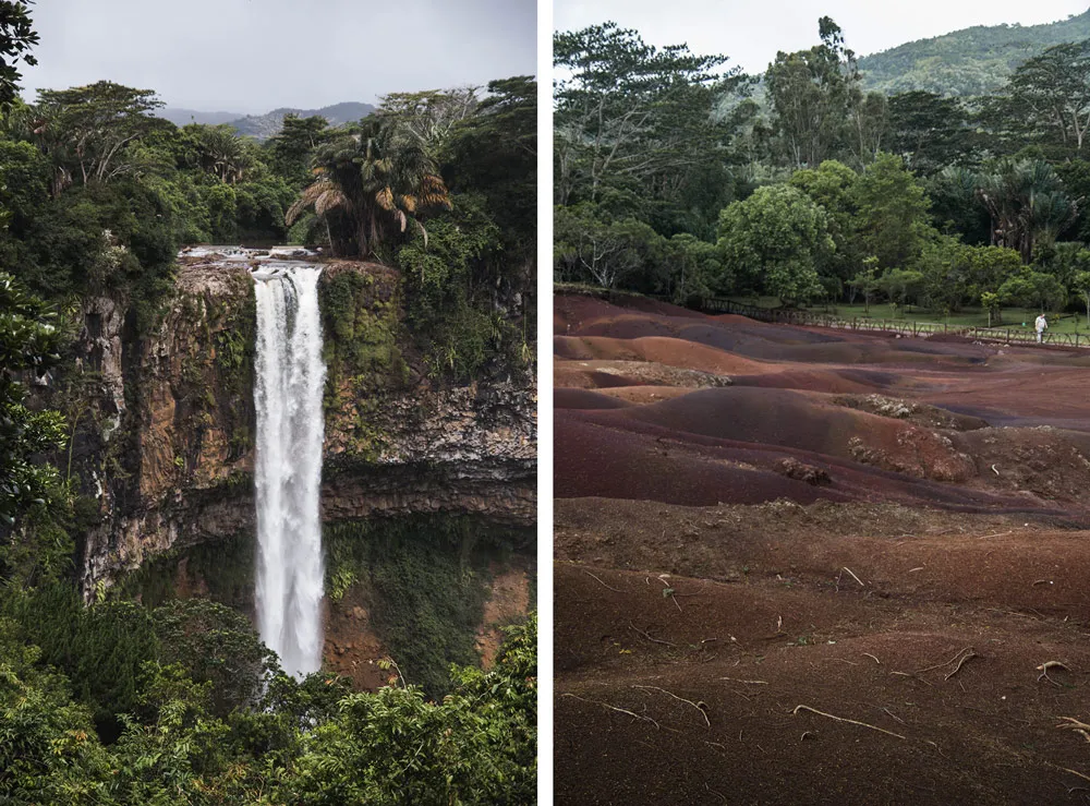 Naším dalším cílem byla sedmibarevná země v oblasti Chamarel. Vypadá jako písečné duny, které mají různé odstíny červené a oranžové barvy. Byl to sice hezký pohled, ale těžce turistický a asi bych si podobné místo propříště odpustila.