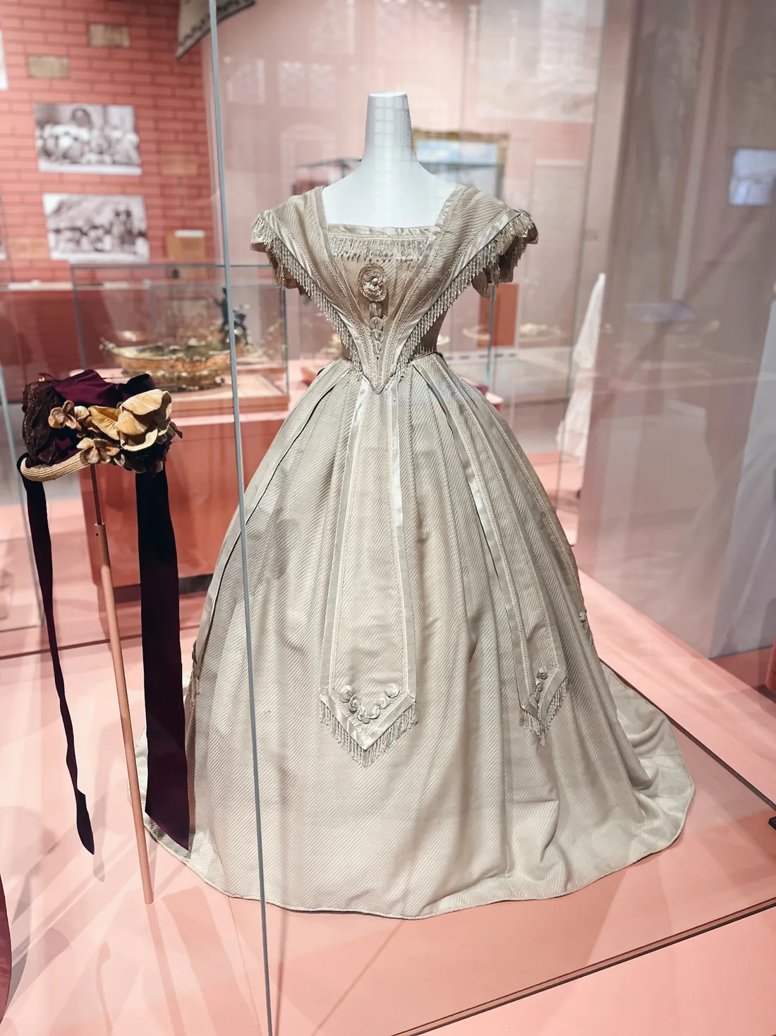 Na výstavě nechyběly ani ukázky dobové módy. Tyhle šaty jsou dívčí, mají moc pěkné detaily.
