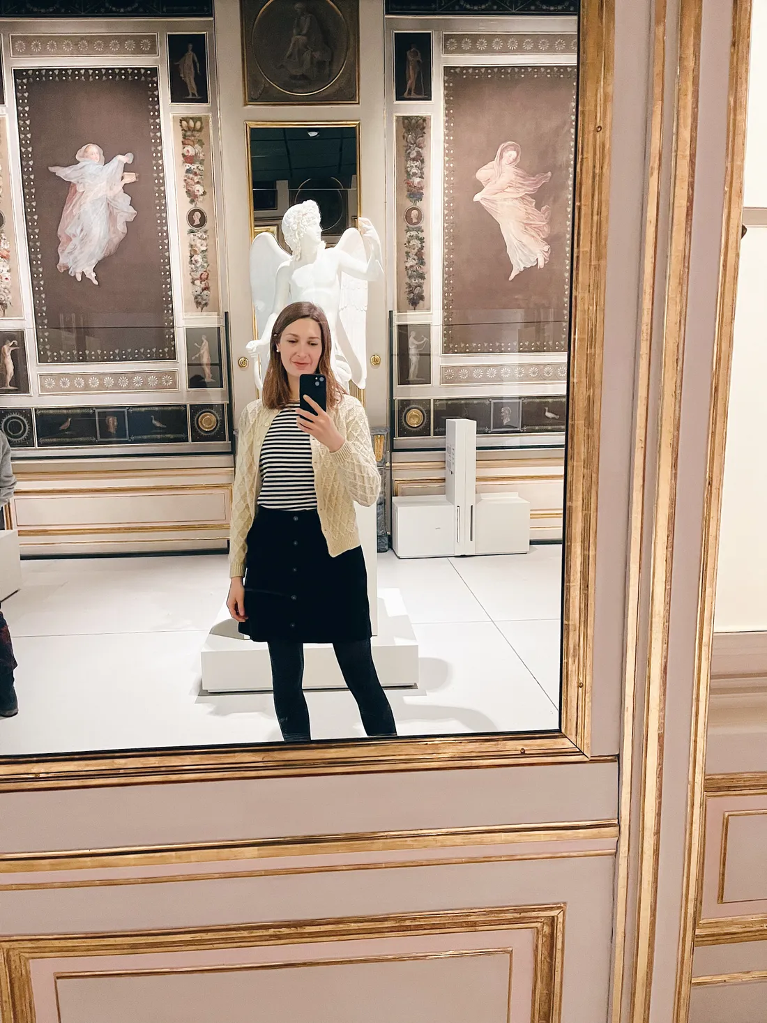 A protože venku bylo krásných 9 stupňů, měla jsem svou oblíbenou sukni, námořnické tričko a vintage béžový svetřík.