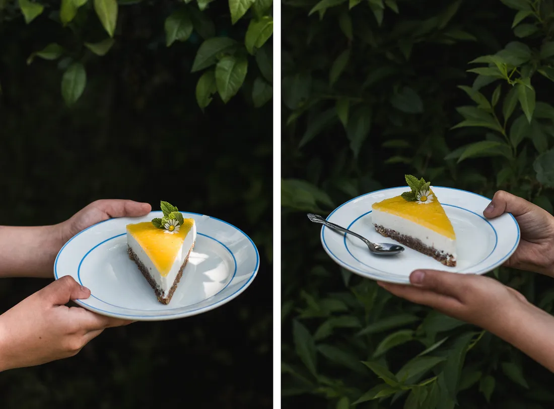 - Želatinu vmíchejte do mangového pyré a přelijte přes cheesecake. Koláč nechejte další dvě hodiny ztuhnout v lednici a pak ho můžete ozdobit bylinkami, kytičkami nebo ovocem.
