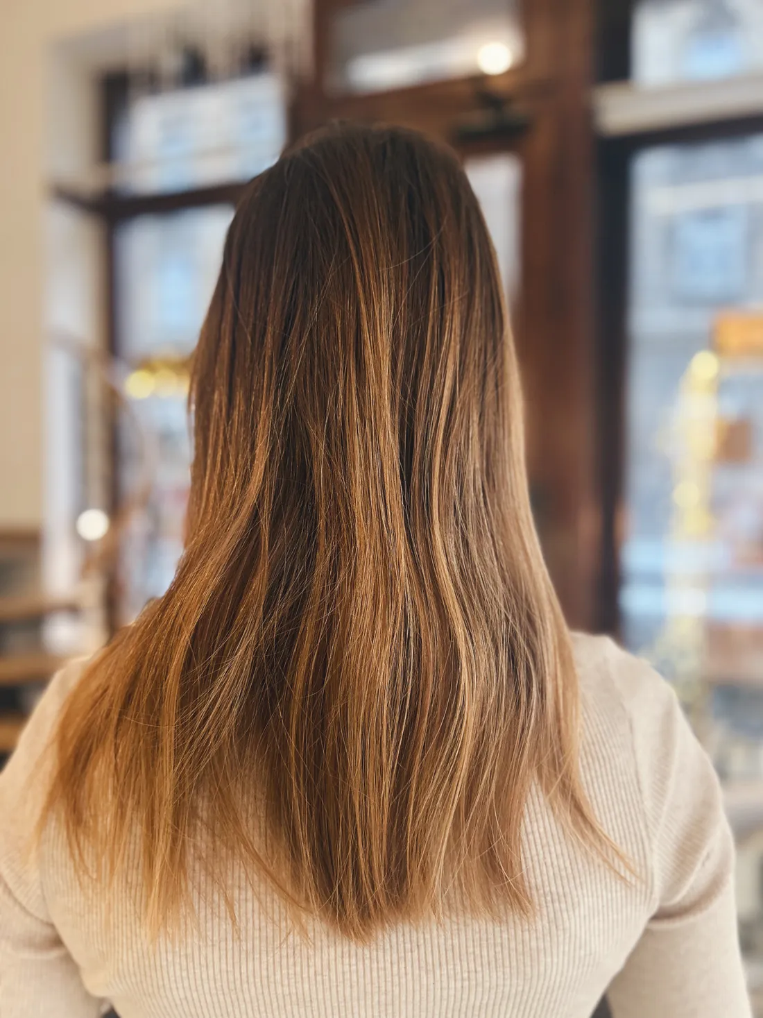 Výsledkem měly být jemně zesvětlené vlasy bez tvrdých přechodů, jaké dělá melír. A zároveň aby barva přirozeně odrůstala a nepotřebovala každých pár měsíců doplnit.
