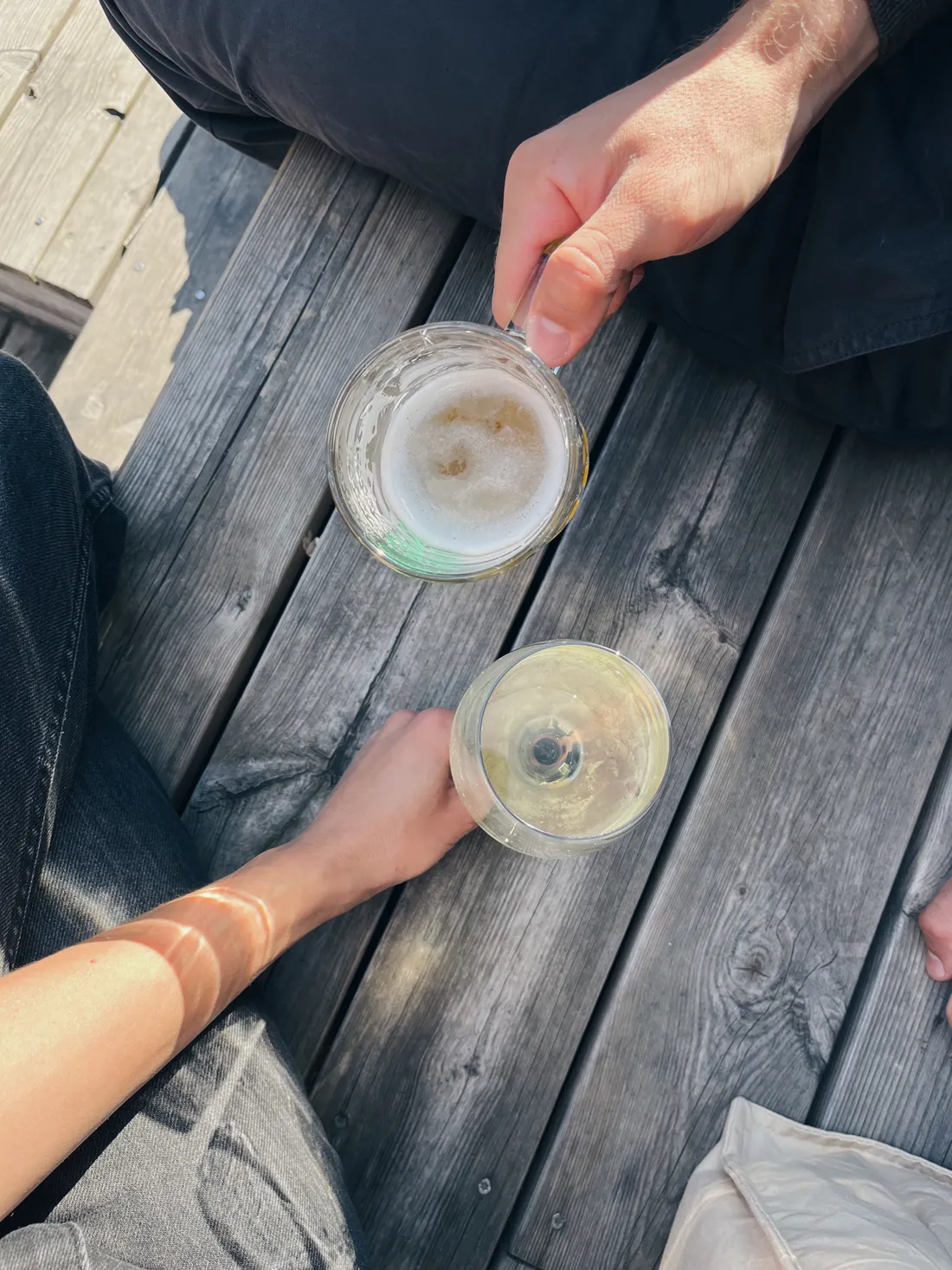 Spokojení a vysaunovaní jsme šli zpátky do města, do Malmö Saluhall, kde jsme se měli potkat s kamarádem Jakubem. Jakub měl zpoždění, tak jsme se mezitím nahřívali na sluníčku každý se svým oblíbeným nápojem.