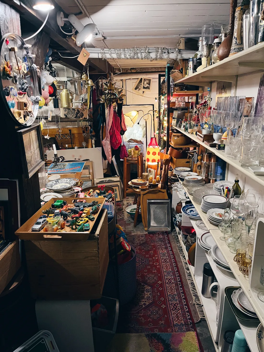 Lund je studentské město a je vyhlášené svými loppis, obchody s věcmi z druhé ruky. A já jsem jich ten den několik navštívila. Tento byl nejdivnější - sklep s nízkým stropem úplně přeplněný věcmi.