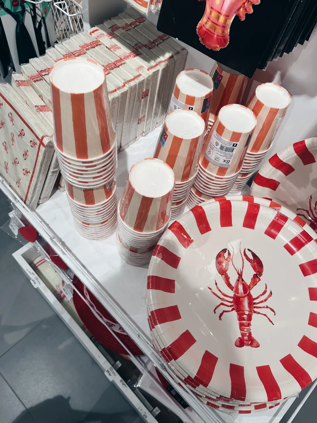 Ve Švédsku začíná sezona raků a můžete si koupit i jednorázové nádobí, girlandy a papírové čepičky s motivem raků.