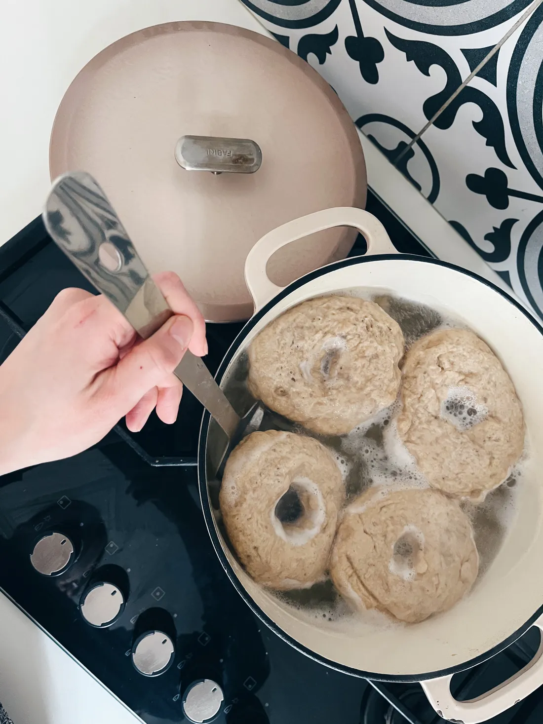 Smaltovaný hrnec používám i na vaření bagelů, je dost prostorný, takže se do něj vejdou čtyři kousky.