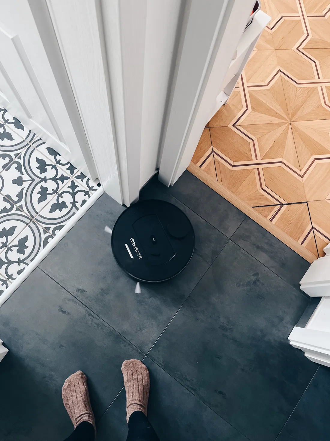 Pustila jsem robotický vysavač, abysme měli čisté podlahy, to se pak doma cítím mnohem líp. Nesnáším drobky pod nohama :)