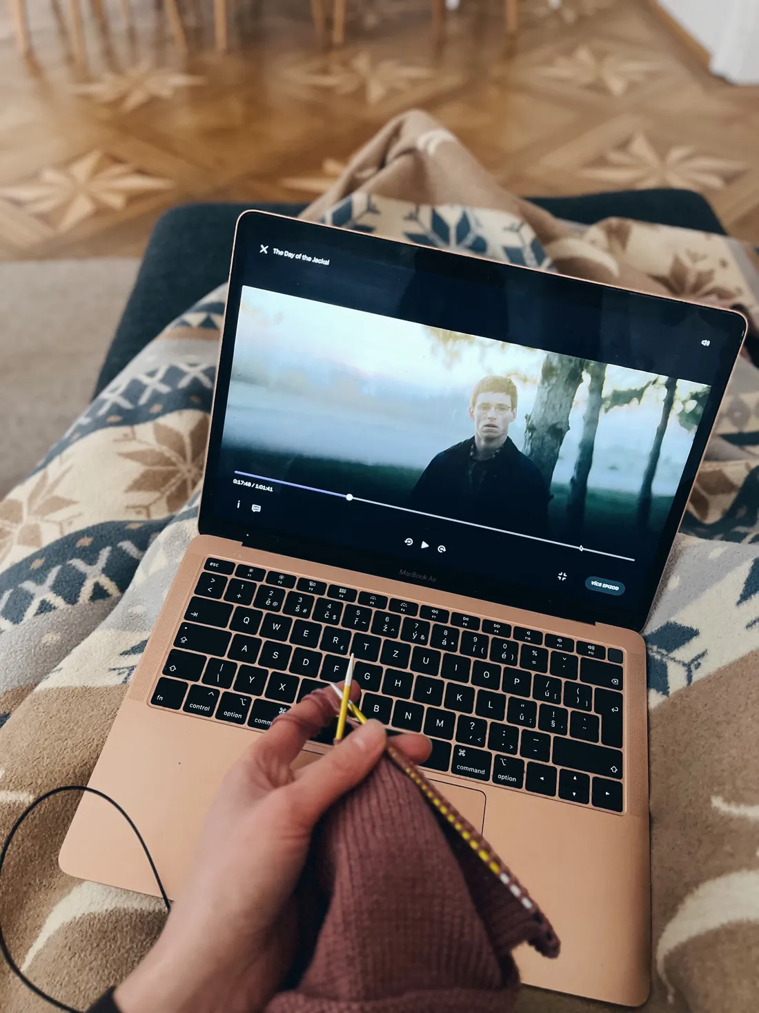 Děti šly po obědě spát, já jsem se na gauči zabalila do deky, pletla a sledovala The Day of Jackal, najdete ho na SkyShowTime. A určitě doporučuju.
