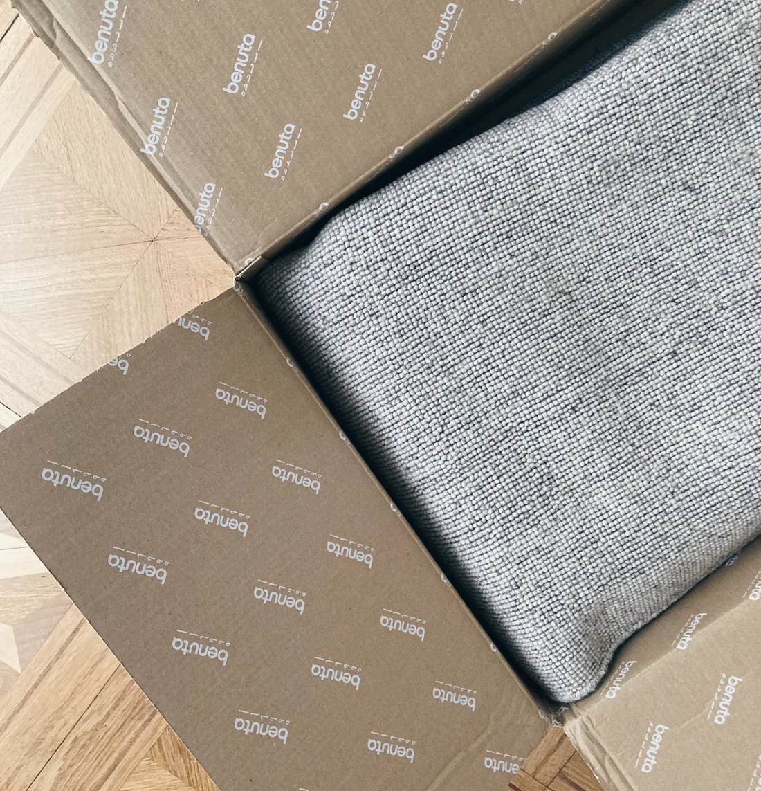 Dorazil ještě jeden balík – náš nový koberec! Je nádherný, úplně podle mých představ. Vlněný, jemně béžový a měkoučký. Brzo vám ho ukážu.