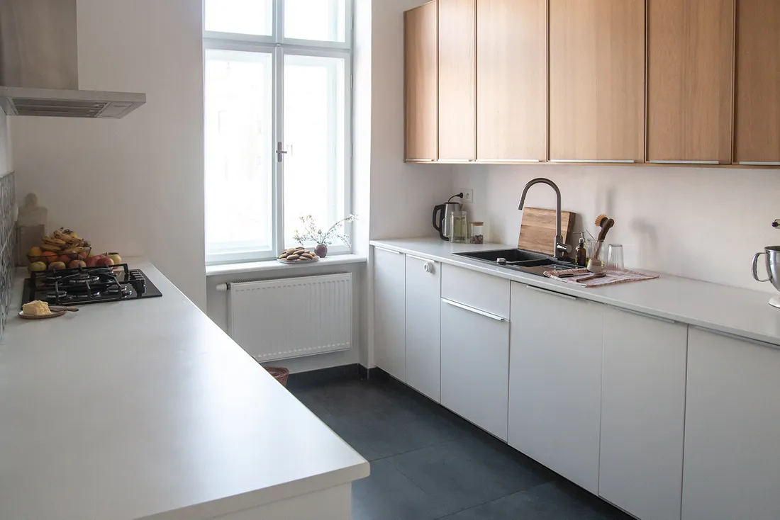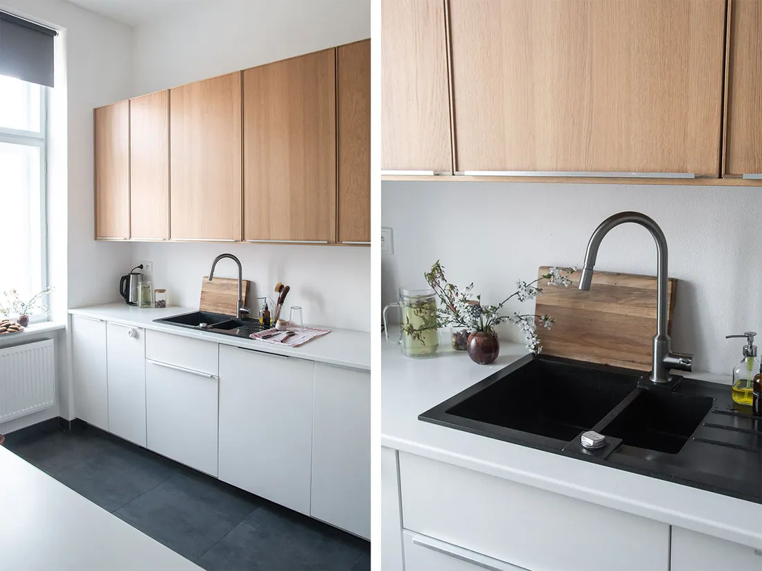 Taky jsem vám už dlouho chtěla ukázat naši kuchyň, která je mnohem větší než naše kuchyň v brněnském bytě (některé šuplíky mám stále prázdné). Moc příjemně se mi v ní vaří a peče.