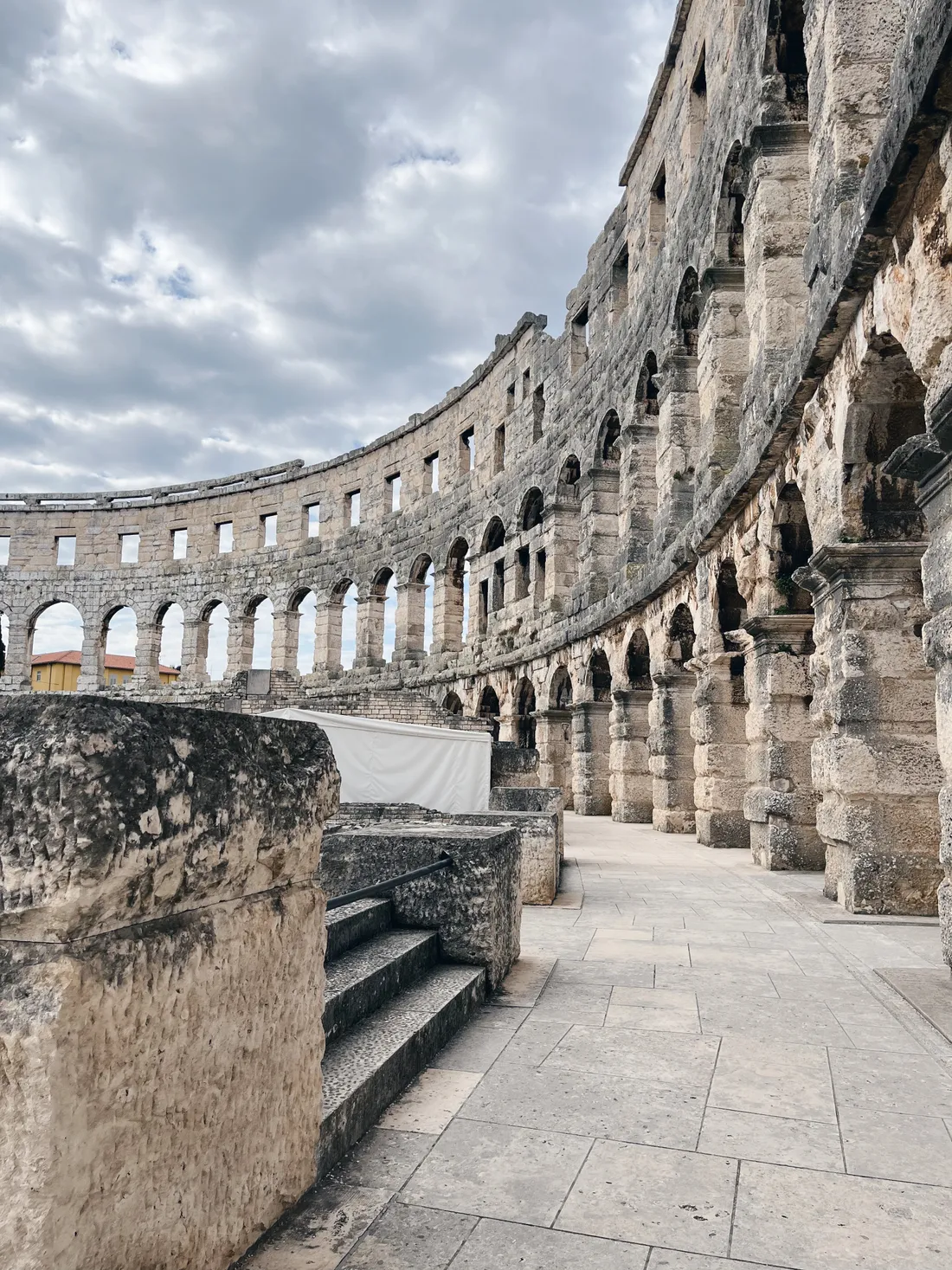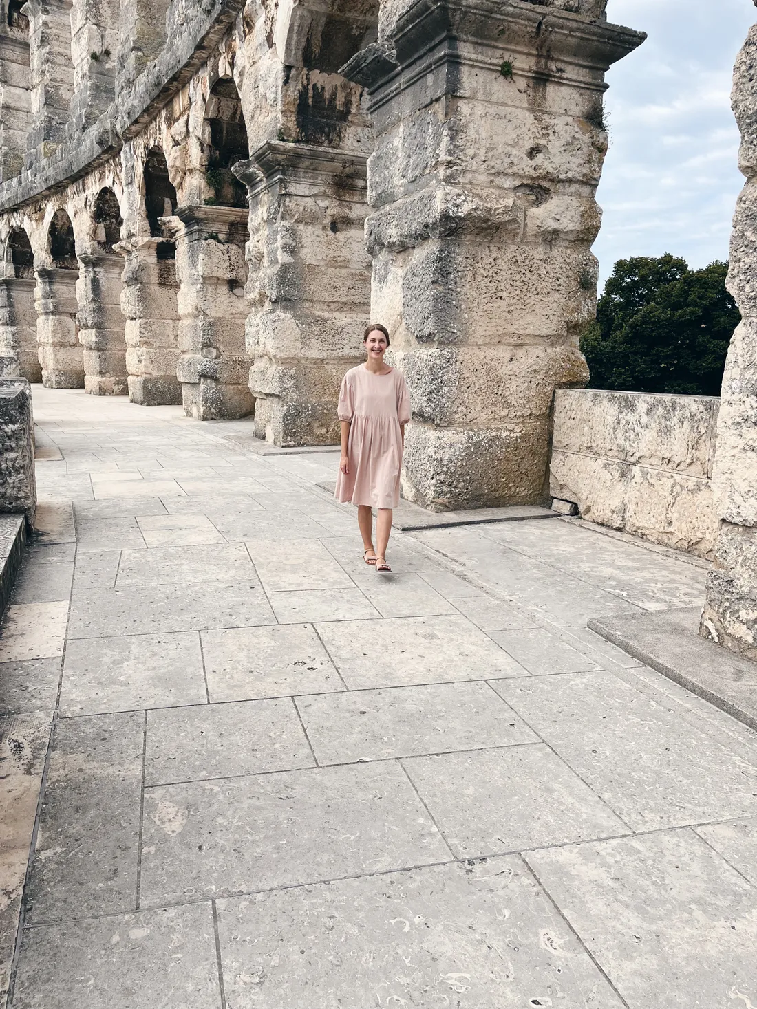 Další den jsme jeli do kolosea v Pule, je staré přibližně 2000 let a je neskutečné, že stále stojí! A tady jsem já, ve svých lehounkých bavlněných šatech z vinted.