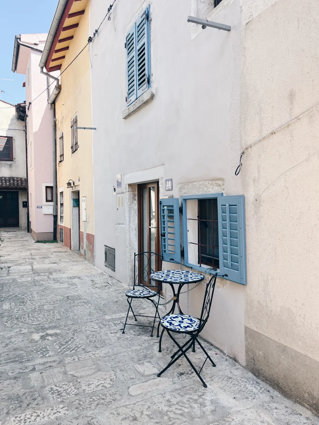A zpátky na pevnině. Děti jsem nechala v manželem na hřišti a šla jsem se projít po Fažaně. Líbí se mi jejich kamenné domečky s barevnými okenicemi.