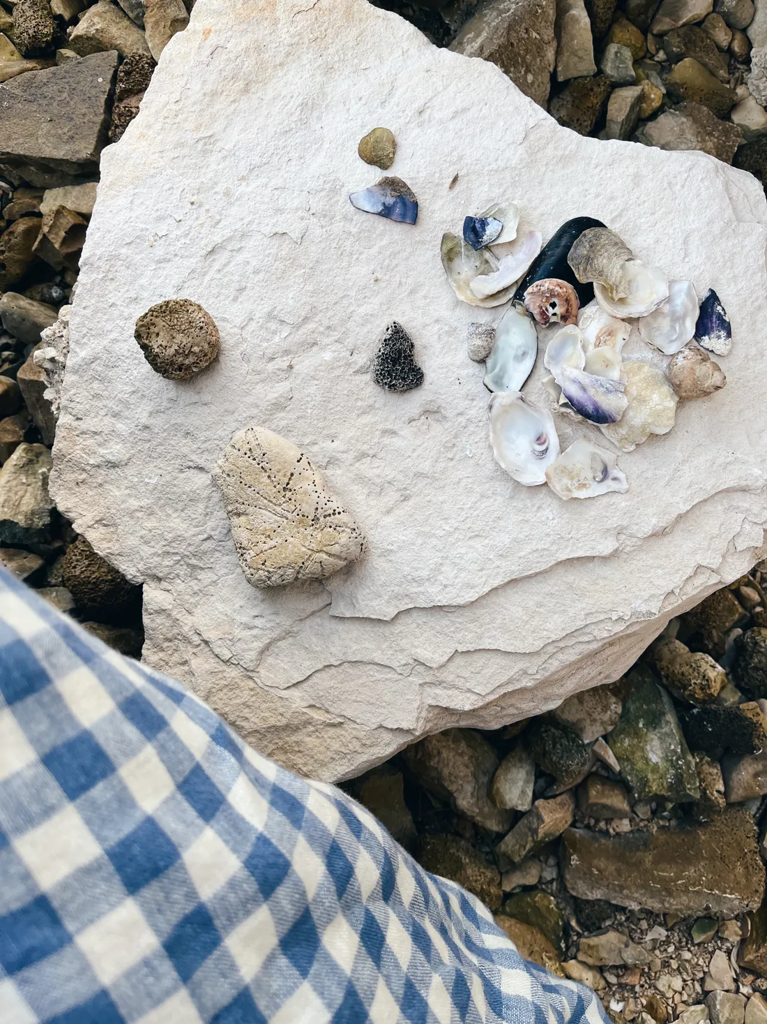Odpoledne nás čekala poslední pláž u rybářského přístaviště. Ochladilo se a nikdo už neměl na koupání náladu, zato jsme nasbírali plno mušliček.