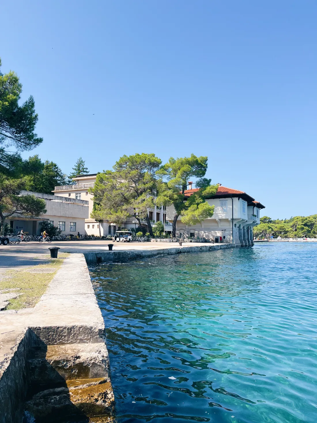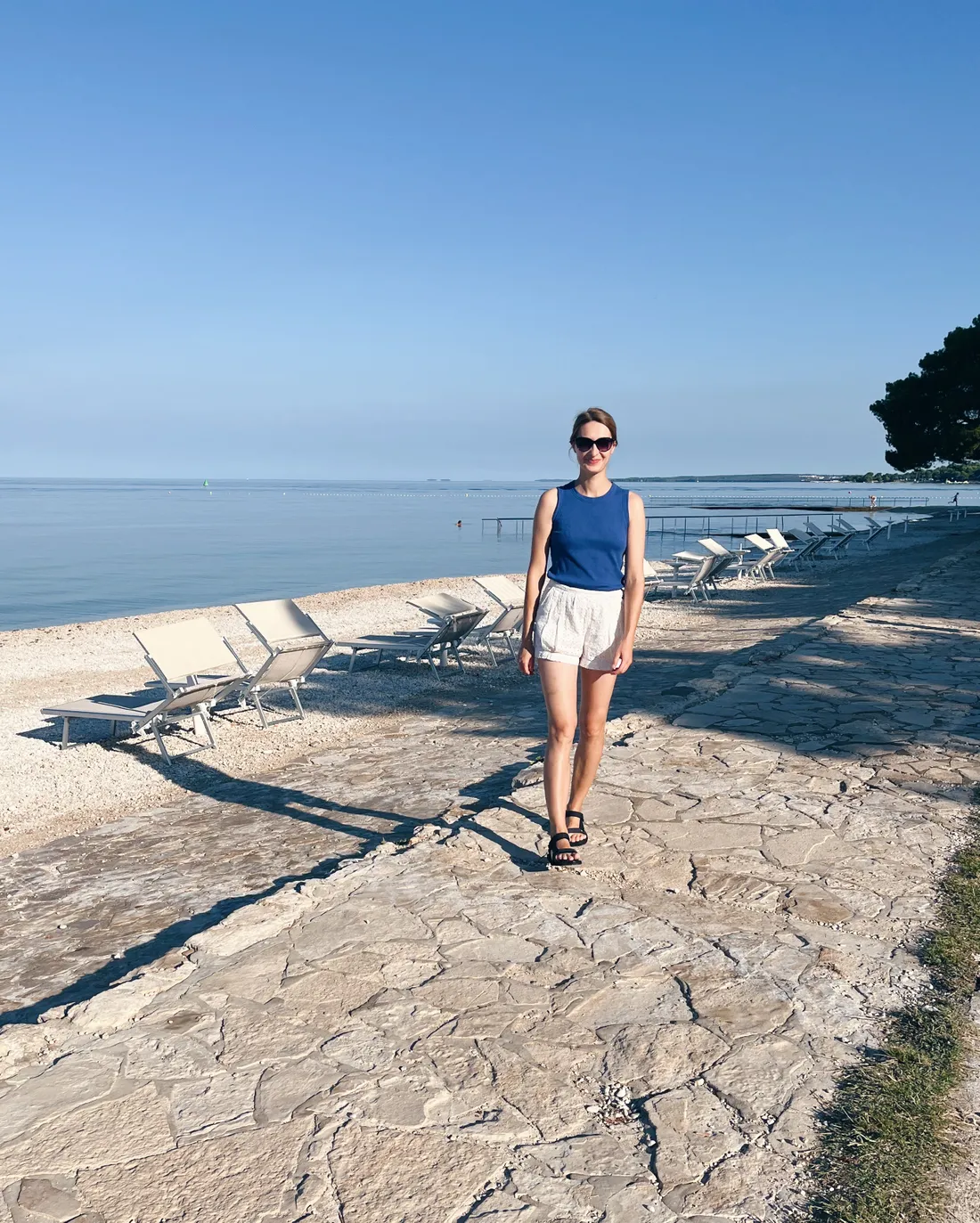 Další den nás čekal výlet lodí na ostrov Veliki Brijun, který je chráněnou rezervací. Ale nejdřív procházka podél pláží městečka Fažana.