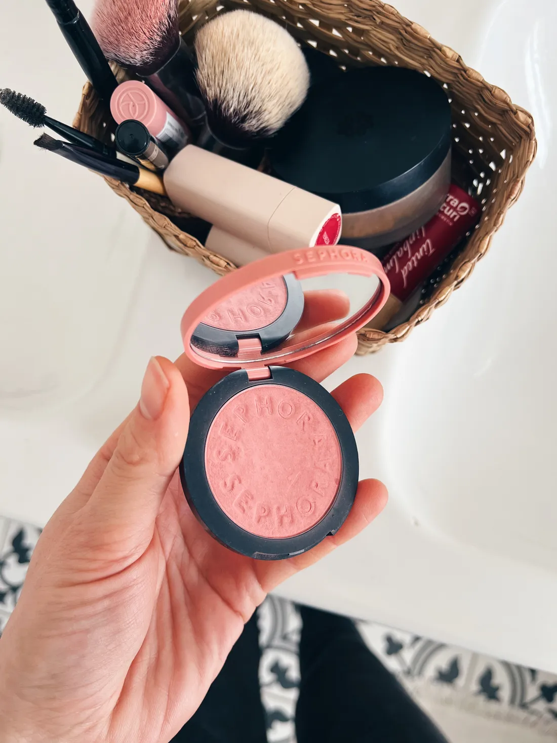 Děti pak jely s manželem na nákup a já jsem se odebrala do koupelny. Říkala jsem si, že vám povím o svých oblíbených produktech. Tvářenku už jsem párkrát zmiňovala, má moc hezkou pigmentaci a barva je na pomezí růžové a lehce meruňkové (mám odstín 01). Krásný pro jarní a podzimní typy.