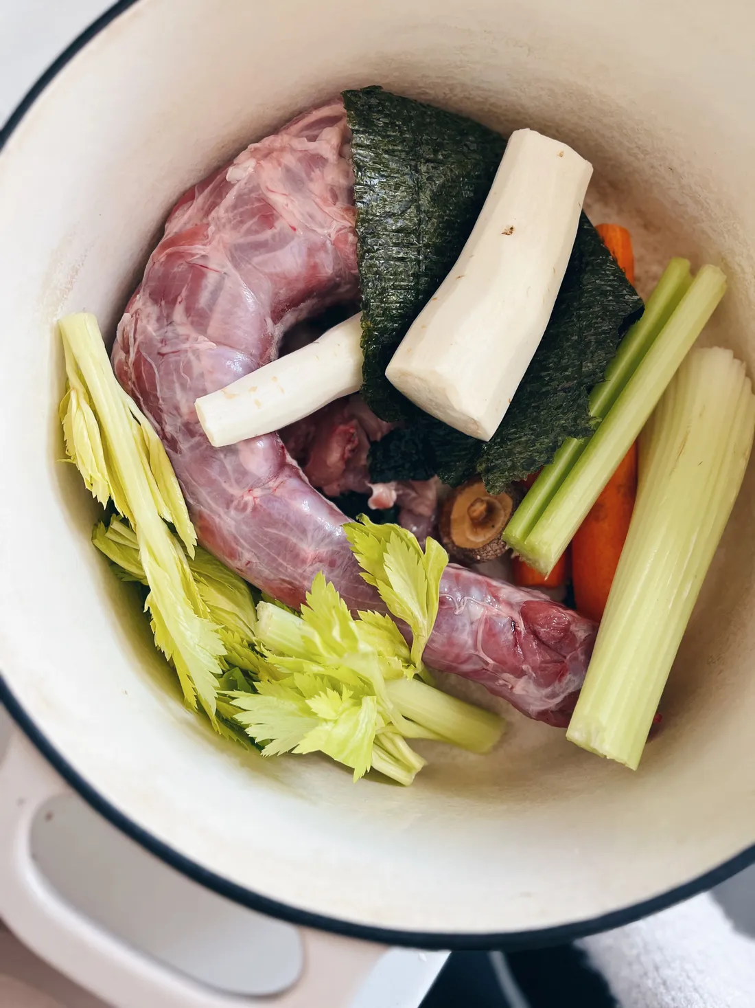 Dala jsem vařit velký hrnec vývaru (mám tento litinový se smaltovaným povrchem) z krůtího krku (beru je z farmy Zelenka).